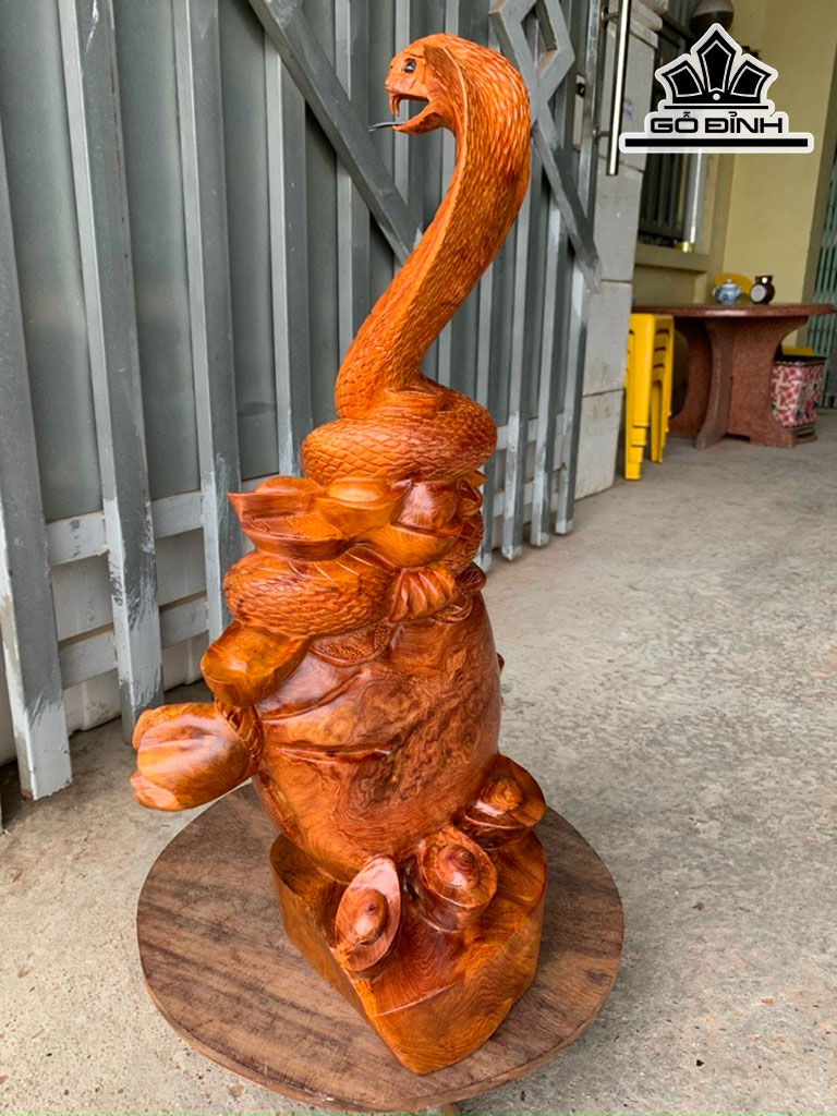 Tượng Rắn Phong Thủy Gỗ Hương Cao 64 Ngang 36 Sâu 29 (cm)
