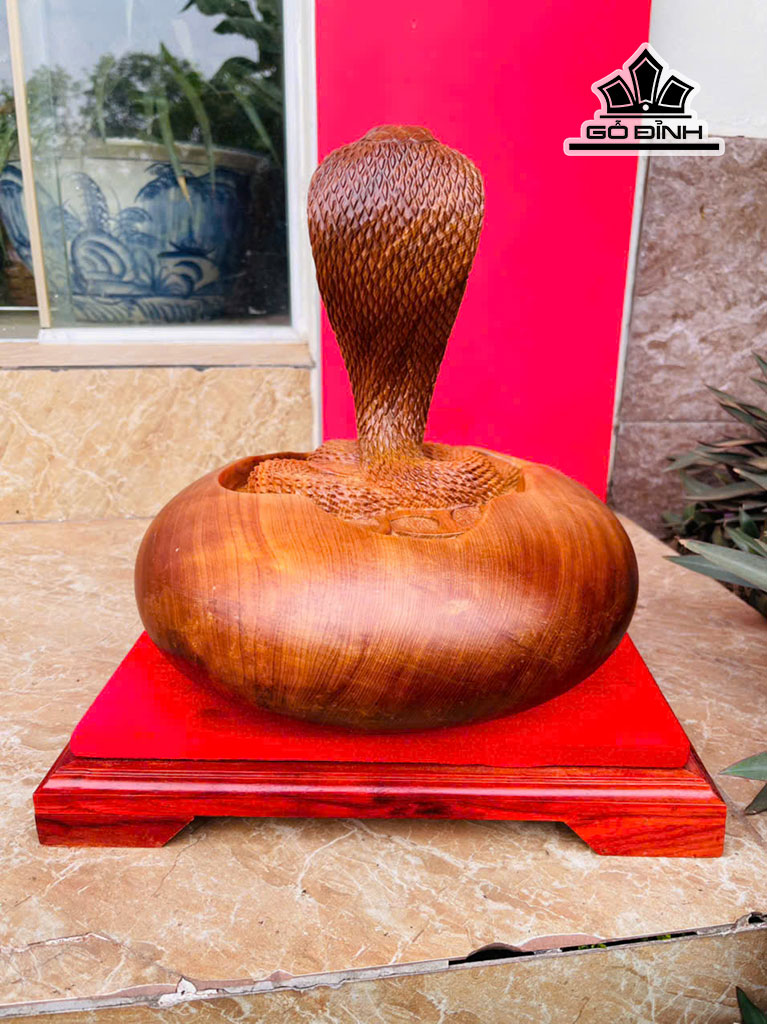 Tượng Rắn Phong Thủy Gỗ Ngọc Am Cao 30 Ngang 28 Sâu 28 (cm) - Cả Kỷ Cao 35 - 6kg