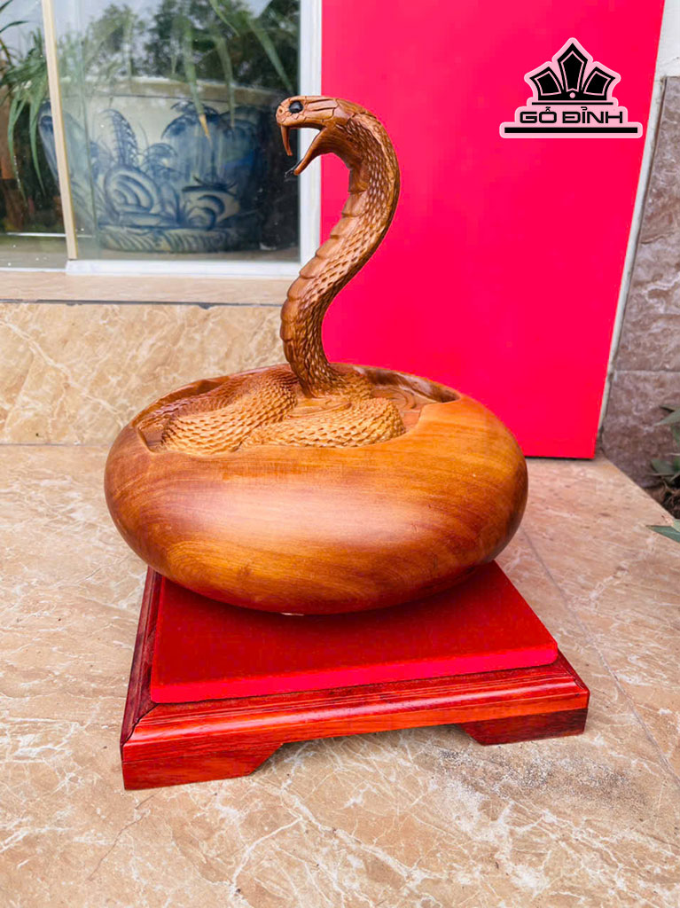 Tượng Rắn Phong Thủy Gỗ Ngọc Am Cao 30 Ngang 28 Sâu 28 (cm) - Cả Kỷ Cao 35 - 6kg