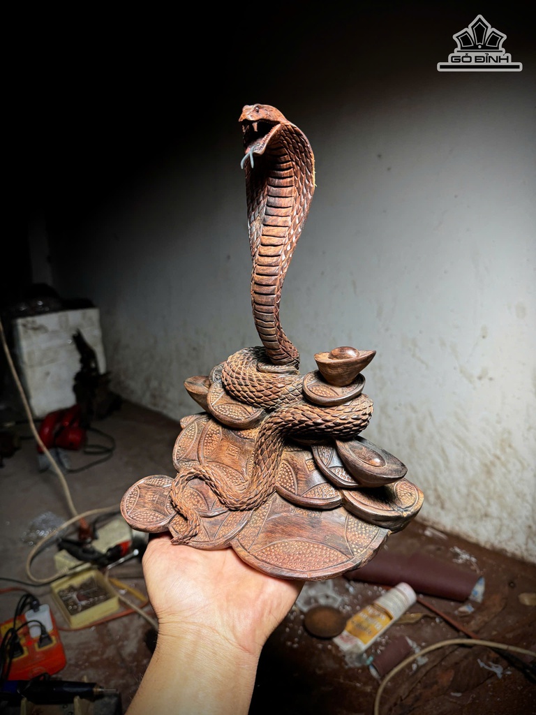 Tượng Rắn Phong Thủy Gỗ Trắc Cao 29 Ngang 24 Sâu 16 (cm)