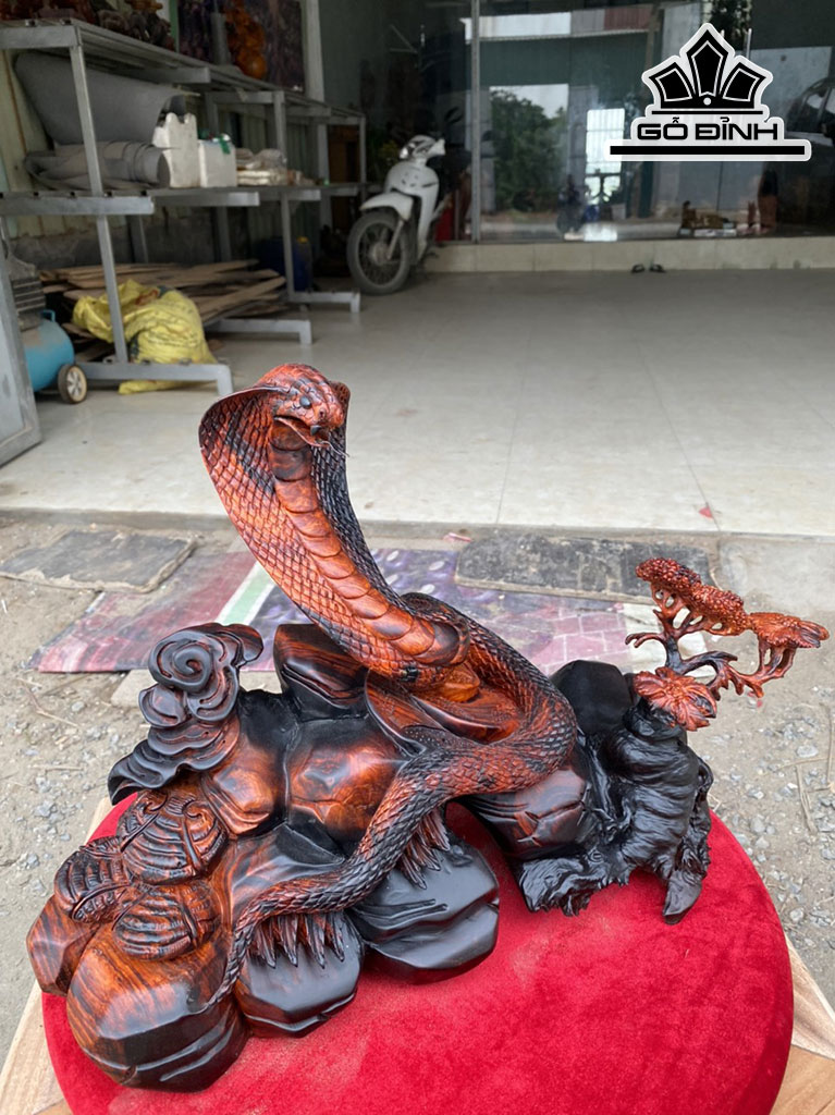 Tượng Rắn Phong Thủy Gỗ Trắc Cao 32 Ngang 45 Sâu 20 (cm)