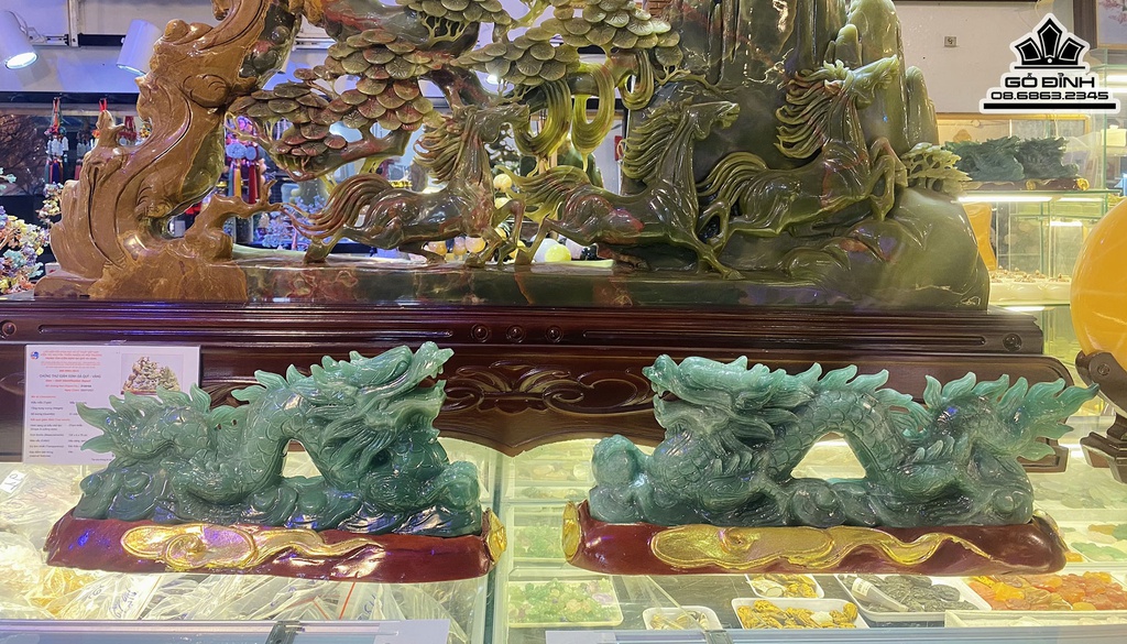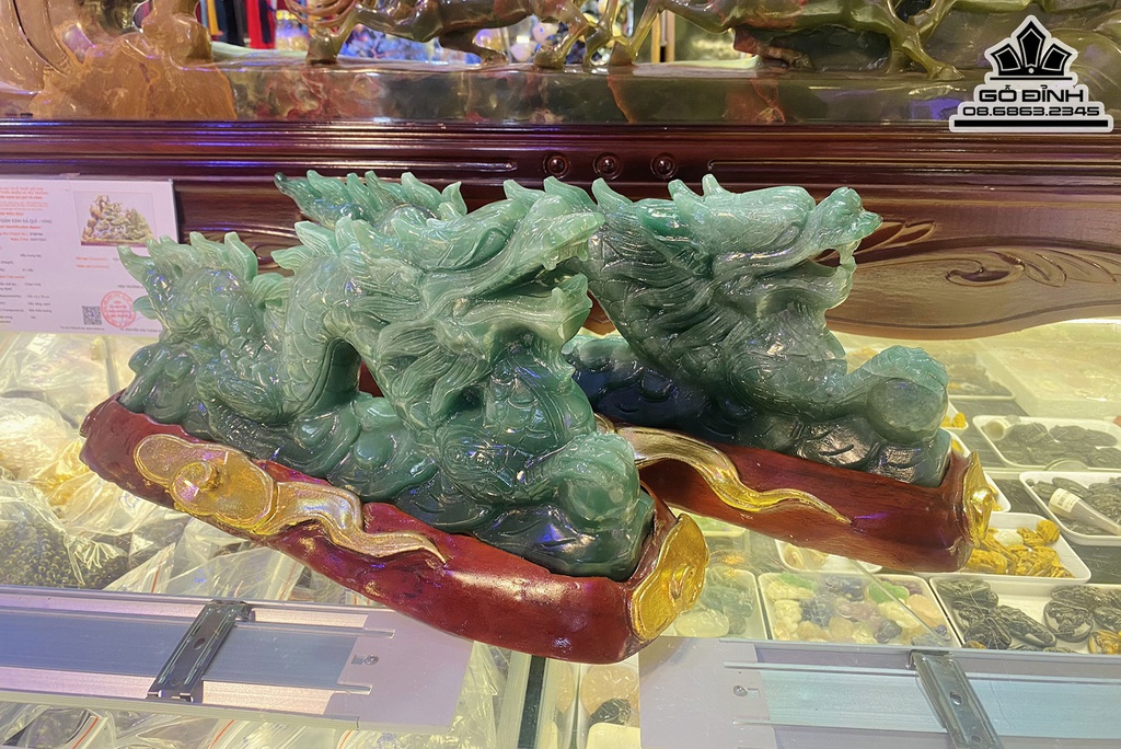 Tượng Rồng Đá Thạch Anh Xanh Cao 17.6 Ngang 39 Sâu 18 (cm)