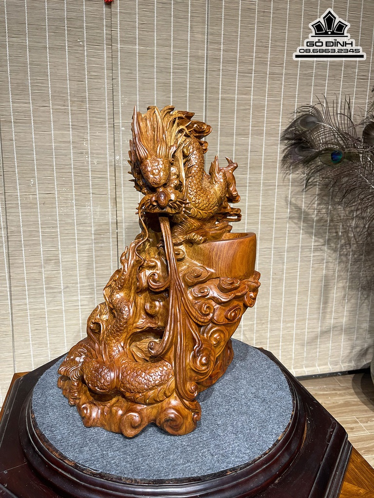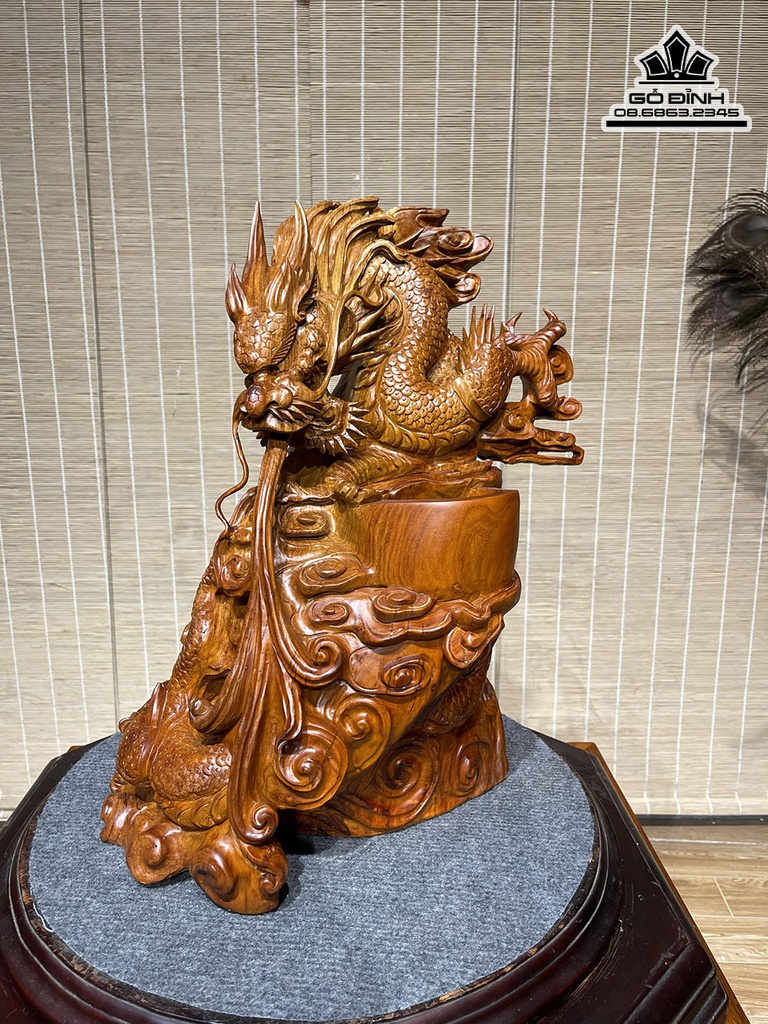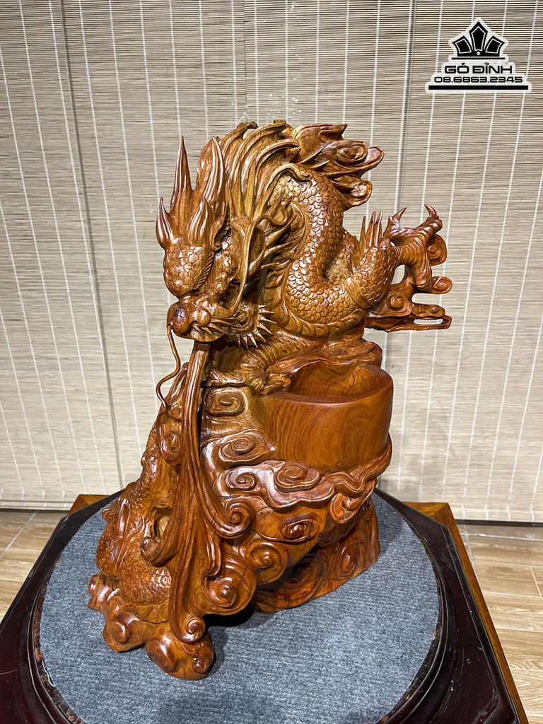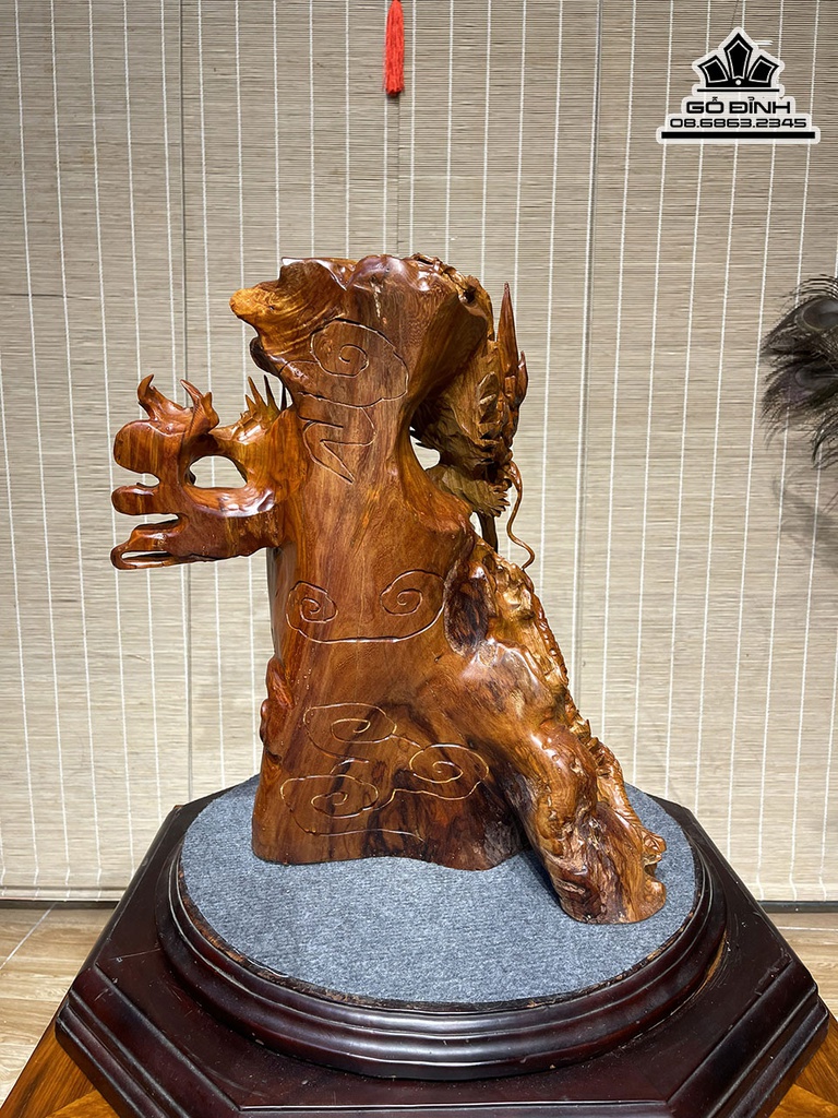 Tượng Rồng (Nhất Long) Gỗ Cẩm Cao 42 Ngang 38 Sâu 25 (cm)