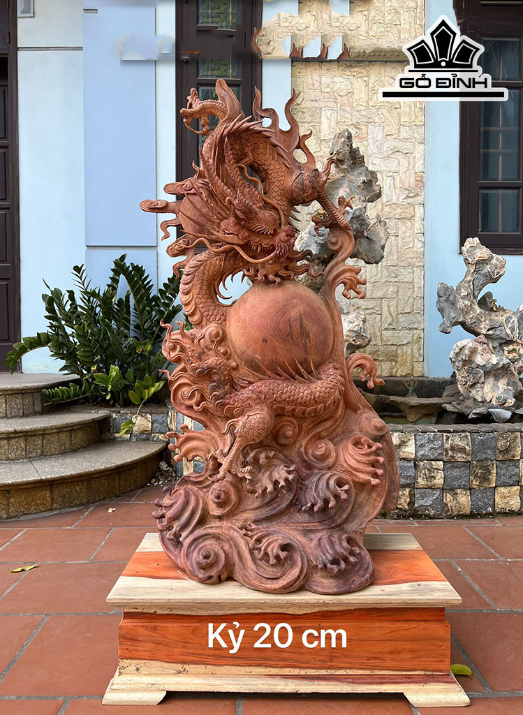 Tượng Rồng ( Nhất Long) Gỗ Hương Cao 123 Ngang 54 Sâu 33 (cm)
