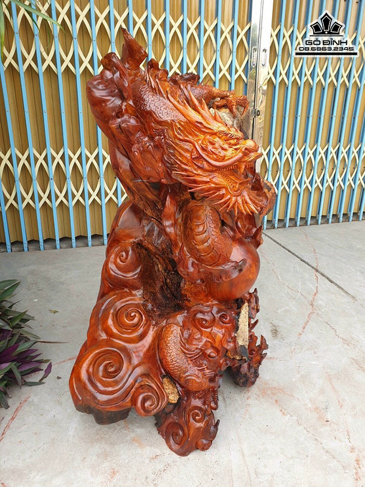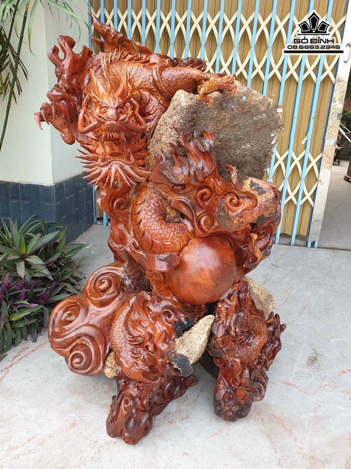 Tượng Rồng (Nhất Long) Gỗ Hương Ôm Đá