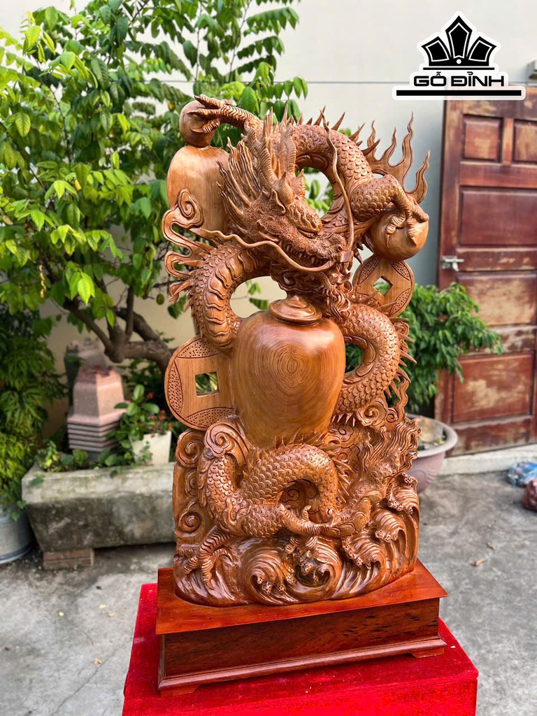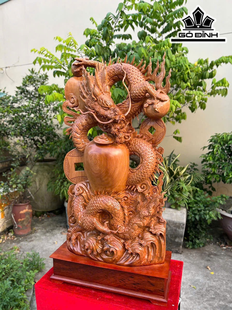 Tượng Rồng ( Nhất Long) Gỗ Ngọc Am Cao Cả Kỷ 100 Ngang 46 Sâu 16 (cm)
