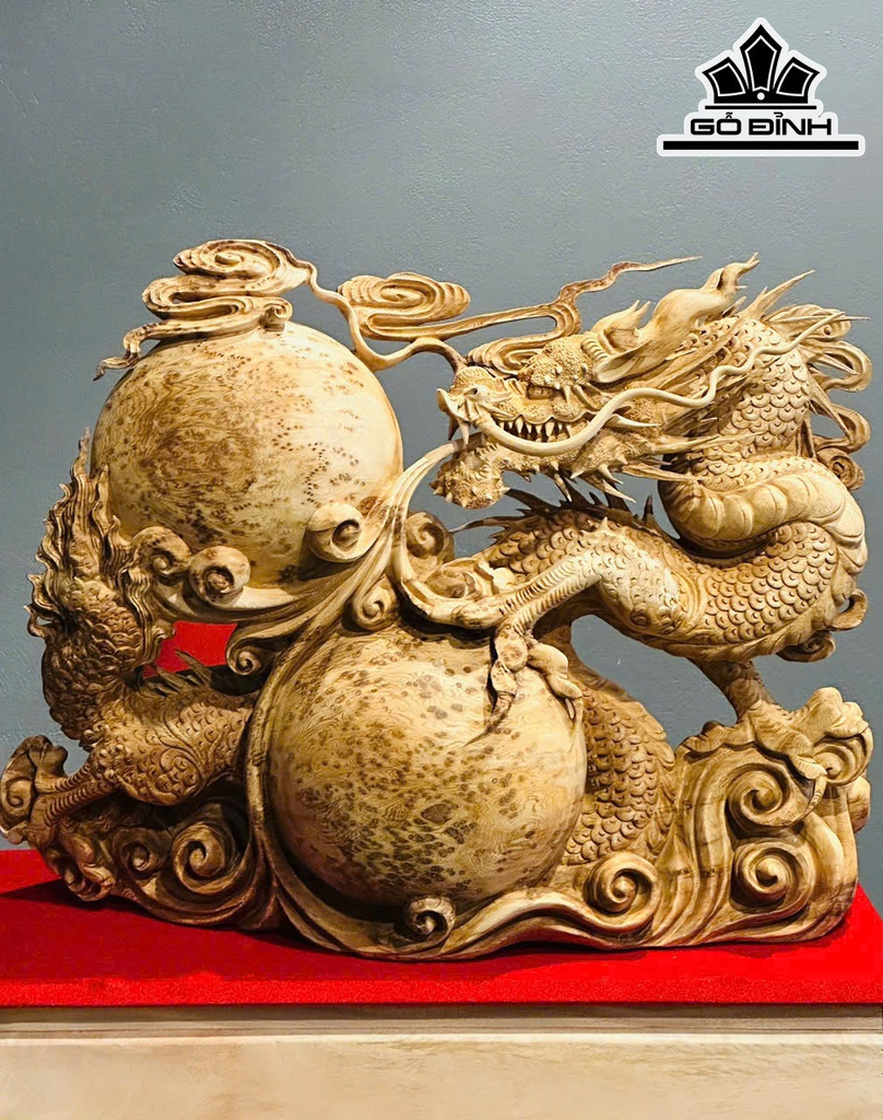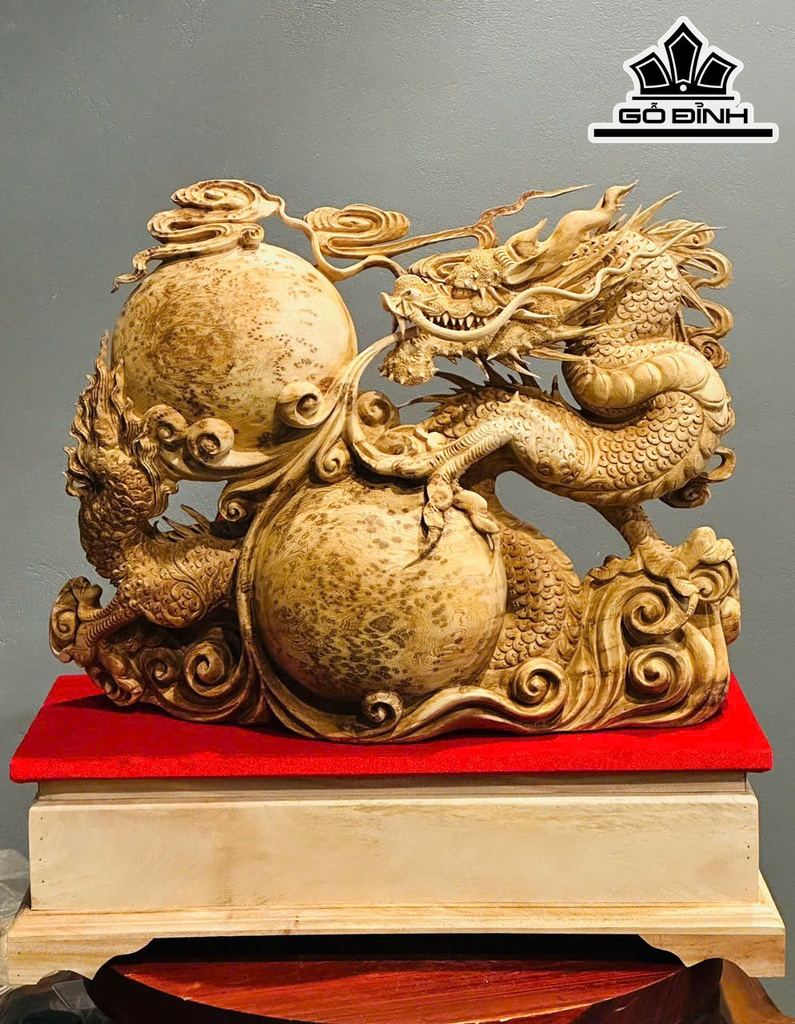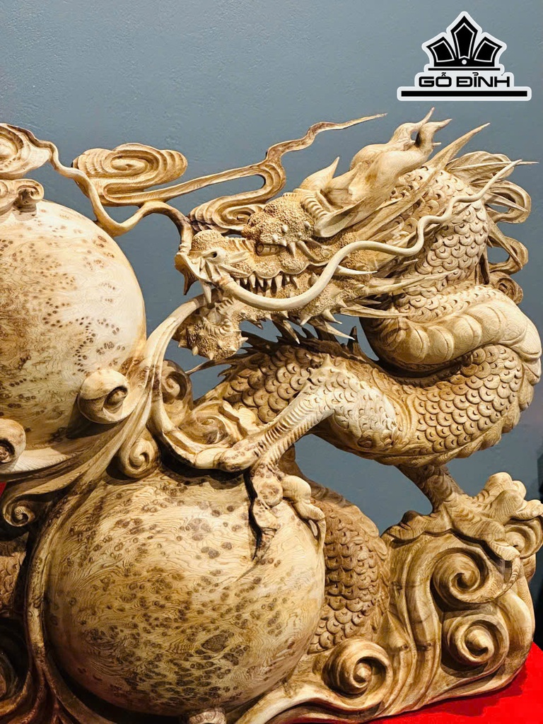 Tượng Rồng ( Nhất Long) Gỗ Nu Ngọc Am Cao 50 Ngang 66 Sâu 26 (cm)