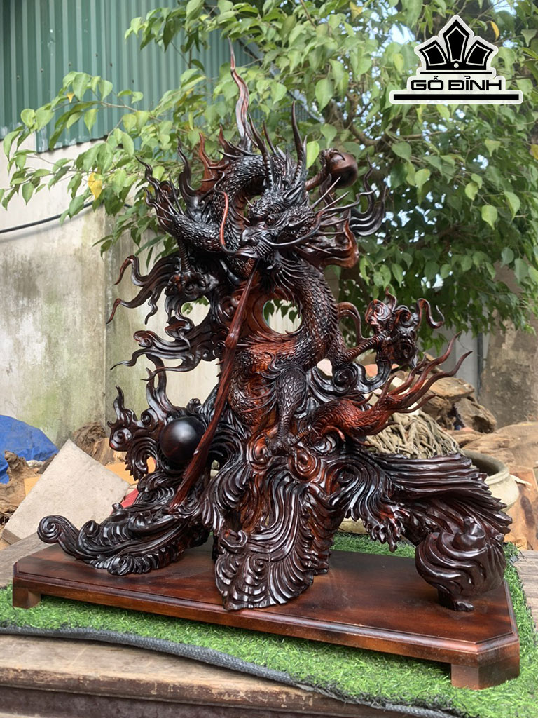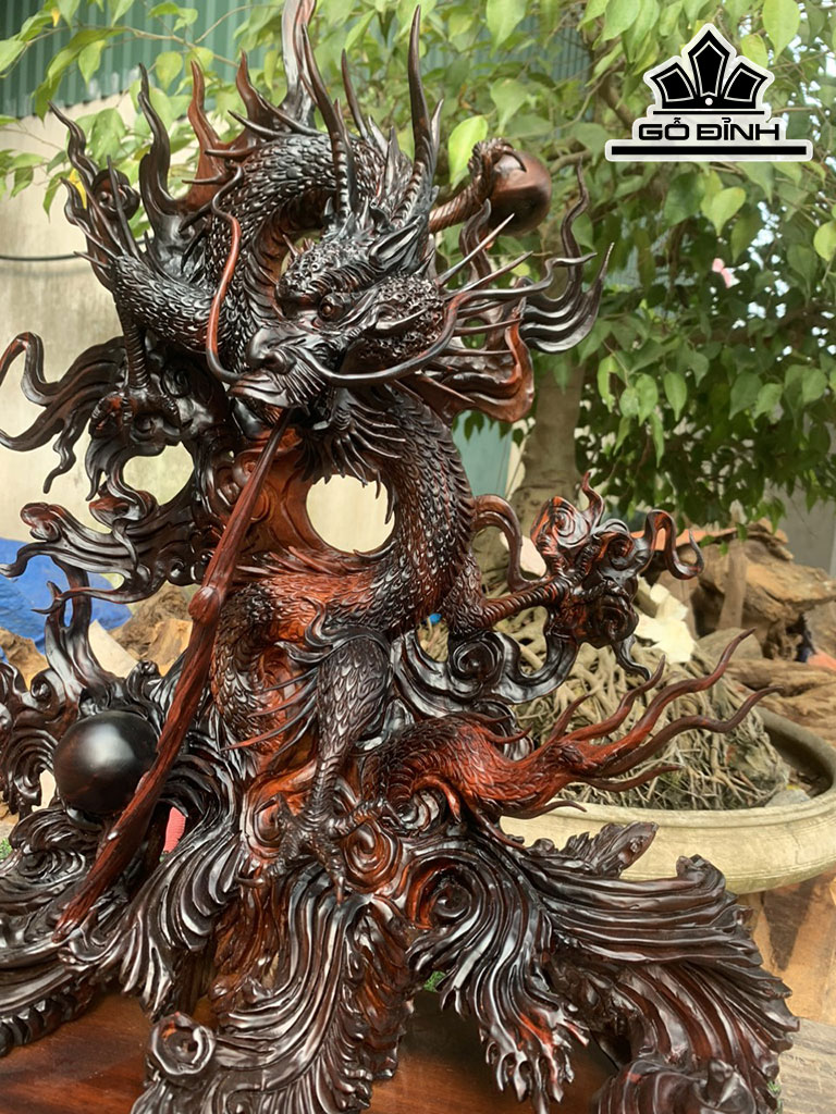 Tượng Rồng ( Nhất Long) Gỗ Trắc Cao 80 Ngang 66 Sâu 32 (cm)