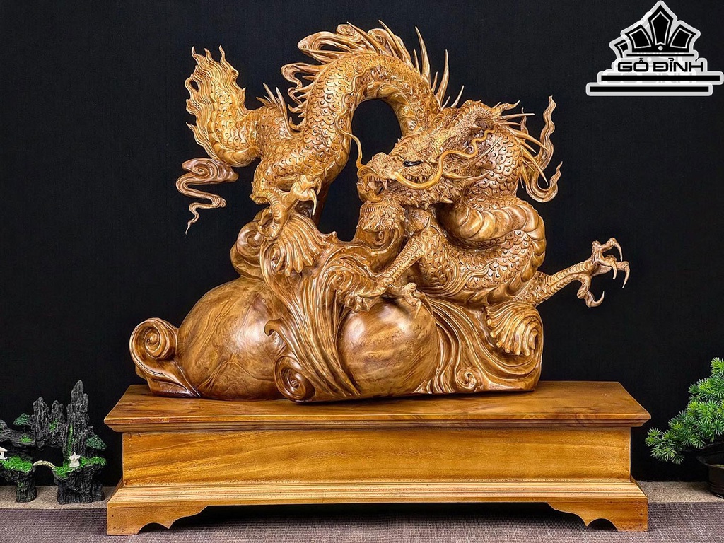 Tượng Rồng ( Nhất Long) Gỗ Xá Xị Cao 67 Ngang 70 Sâu 24 (cm)