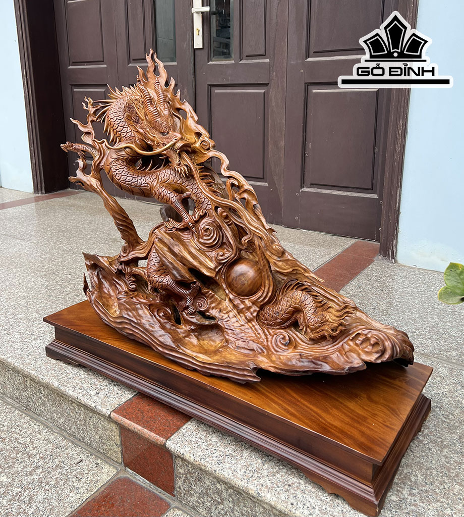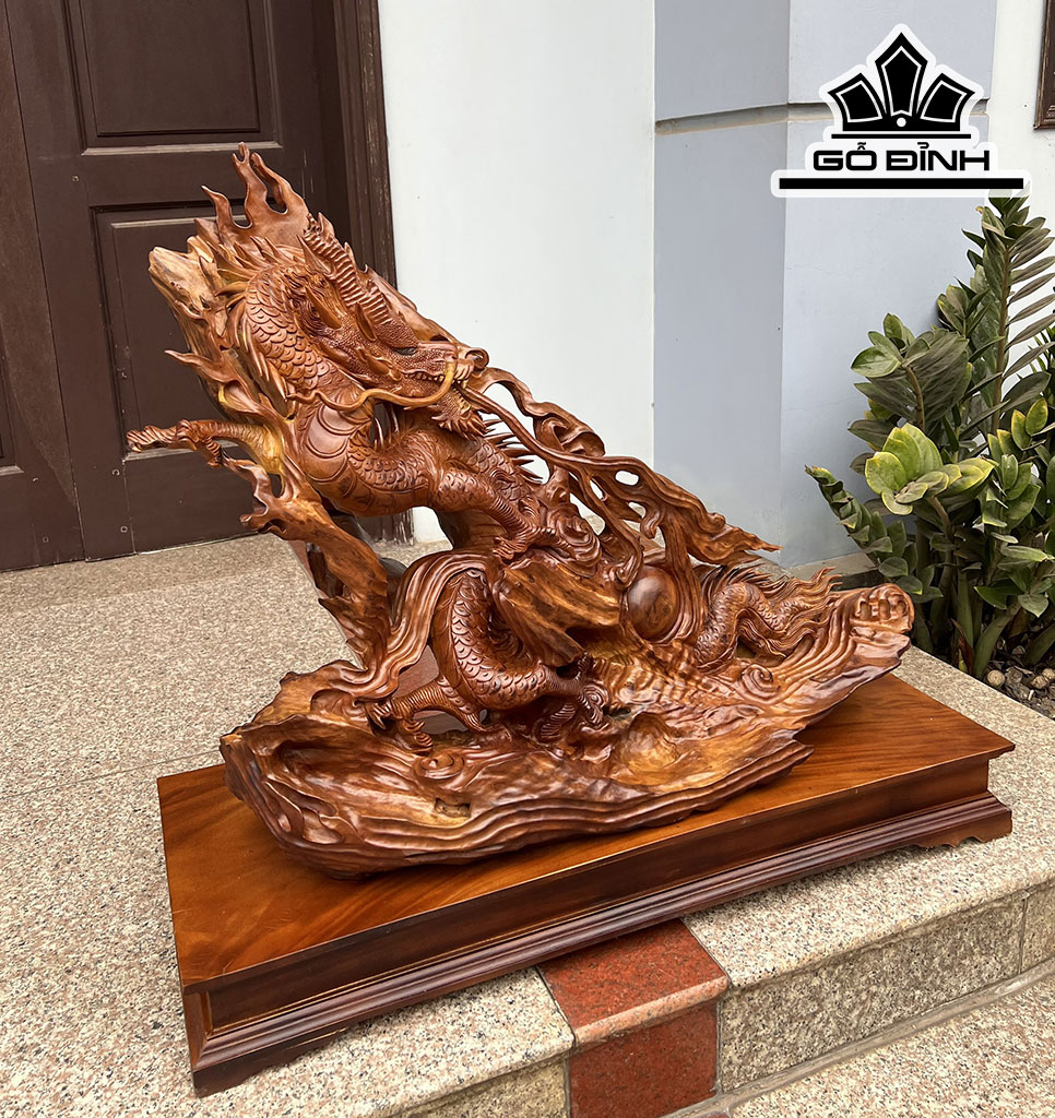 Tượng Rồng ( Nhất Long) Gỗ Xá Xị Cao 75 Ngang 80 Sâu 30 (cm)