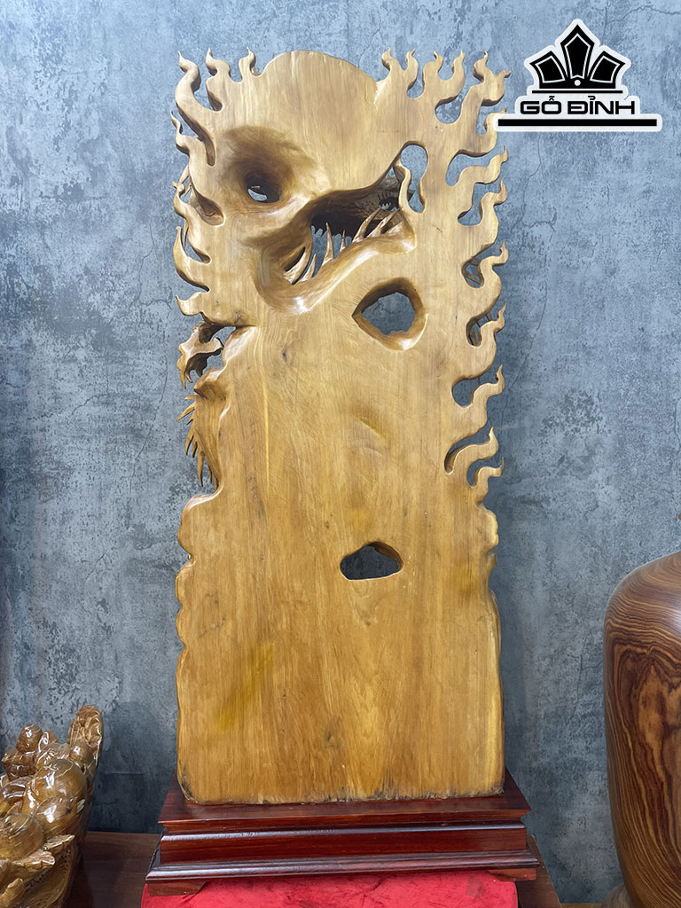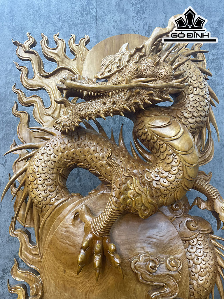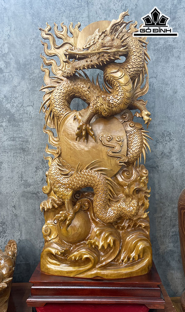 Tượng Rồng ( Nhất Long) Vờn Ngọc Gỗ Ngọc Am Cao 110 Ngang 50 Sâu 17 (cm)