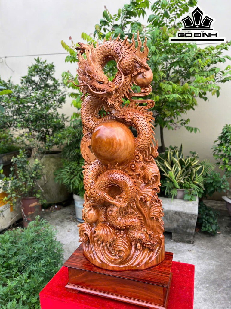 Tượng Rồng ( Nhất Long ) Vờn Ngọc Gỗ Ngọc Am Cao Cả Kỷ 103 Ngangb 38 Sâu 17 (cm)