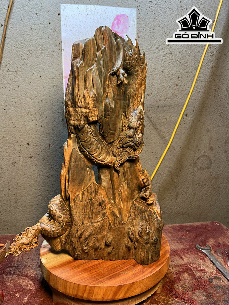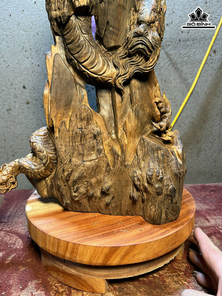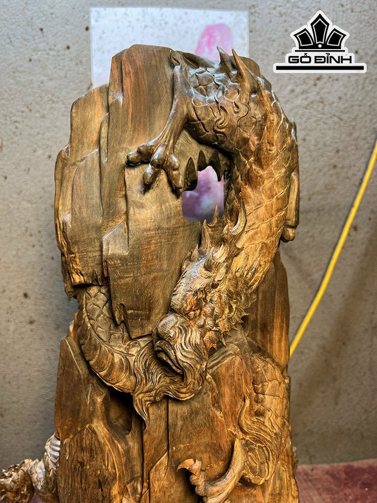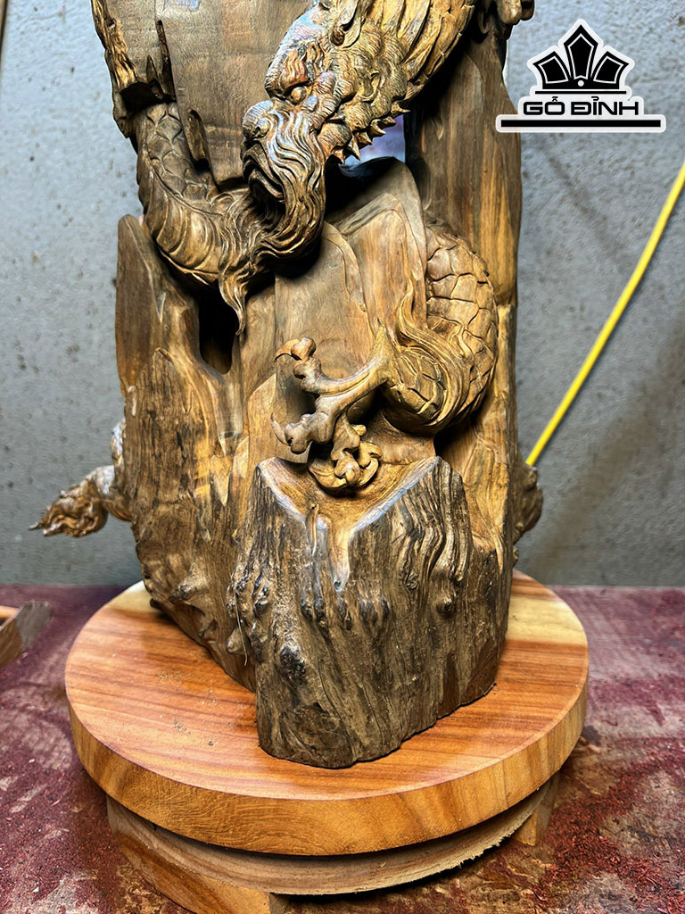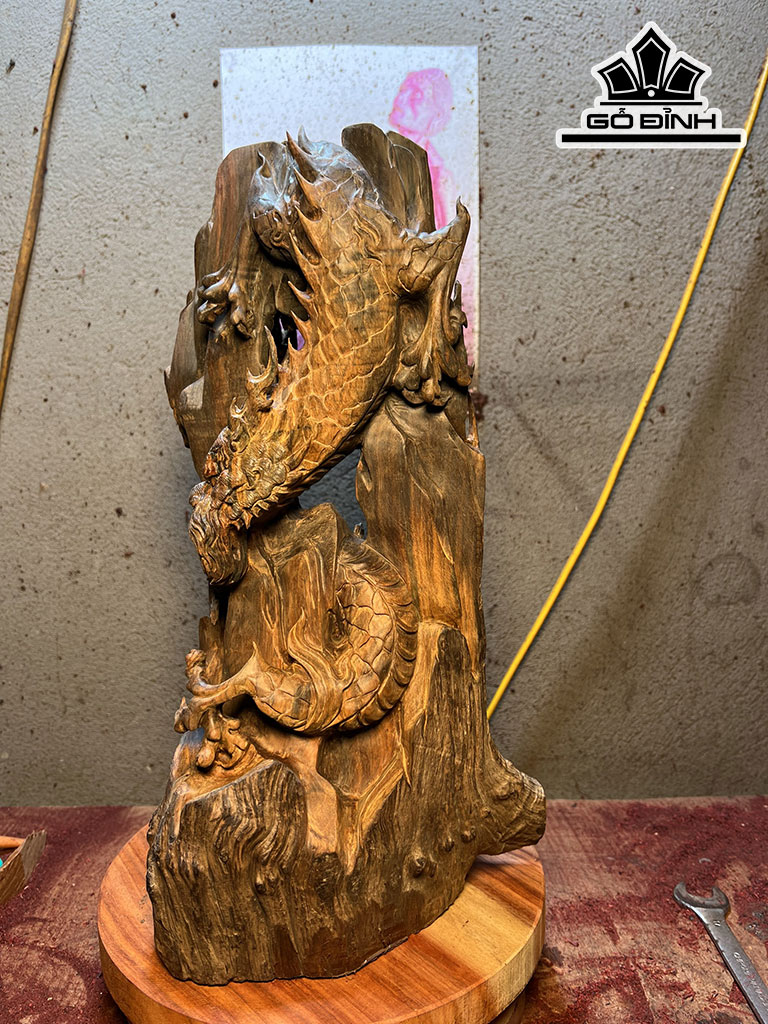 Tượng Rồng Phong Thủy Gỗ Nu Trắc Cao 40 Ngang 30 Sâu 21 (cm)