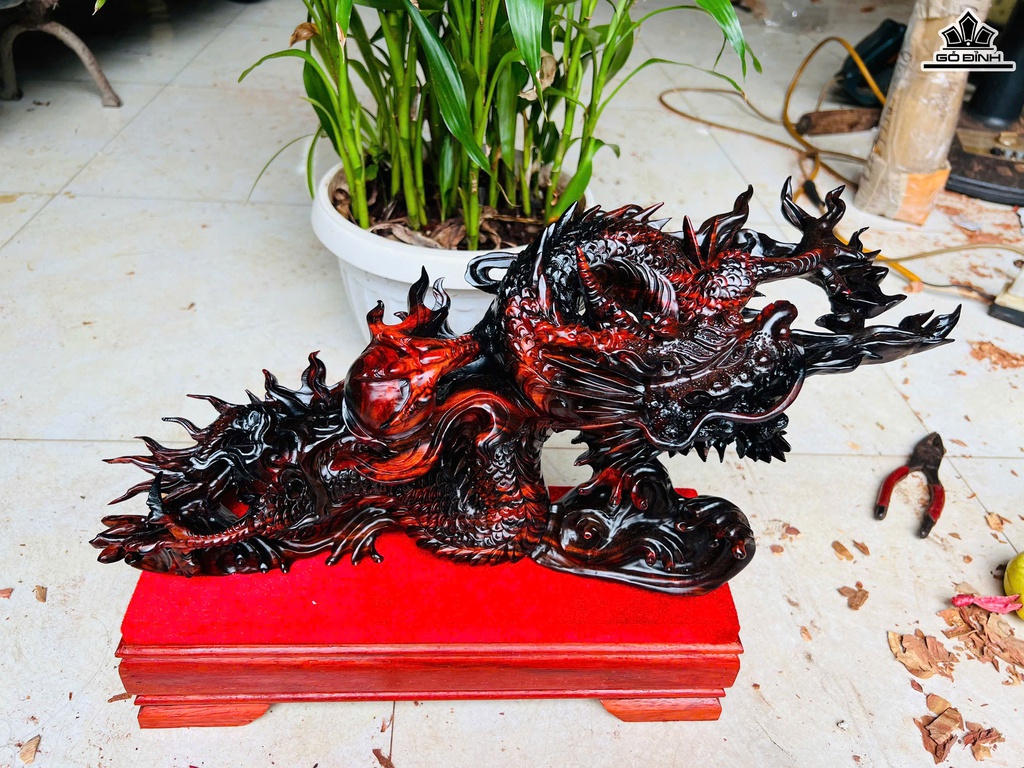 Tượng Rồng Phong Thủy Gỗ Trắc Cao 20 Ngang 48 Sâu 19 (cm)