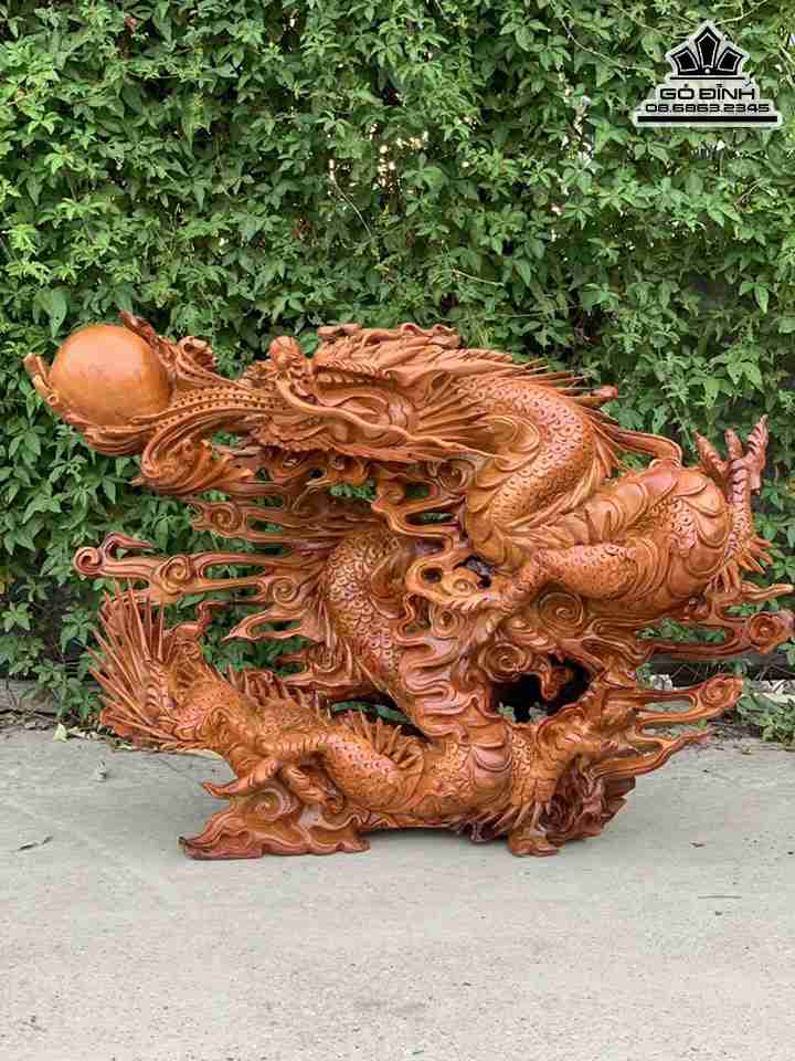 Tượng Rồng Vờn Ngọc Gỗ Hương Cao 65 Ngang 90 Sâu 26 (cm)
