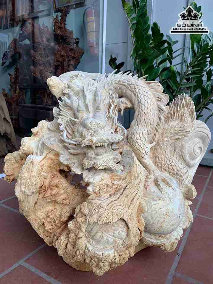 Tượng Rồng Vờn Ngọc Gỗ Nu Nghiến Cao 60 Ngang 70 Sâu 40 (cm)