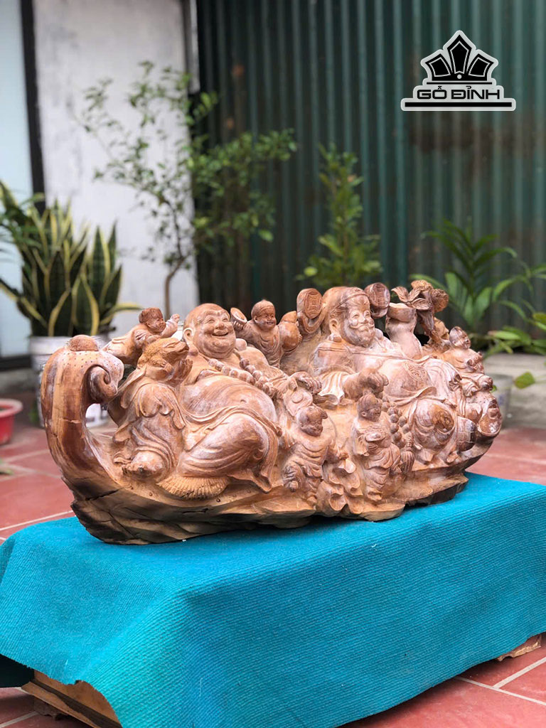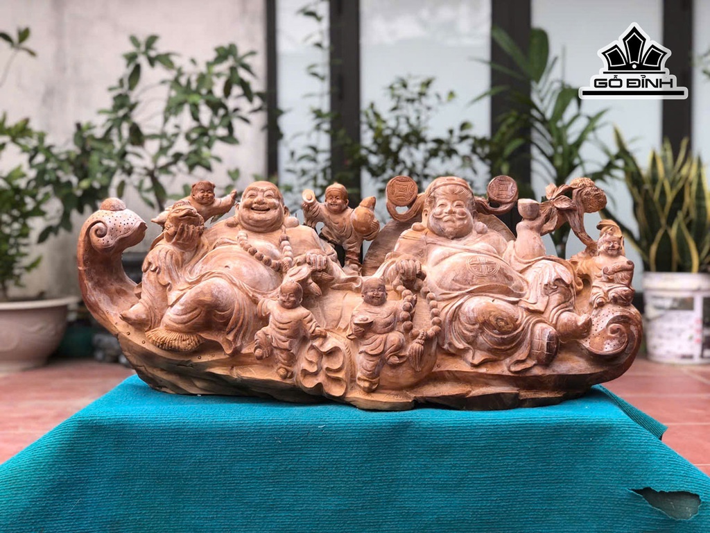 Tượng Song Hỷ Lâm Môn Gỗ Ngọc Am Cao 38 Ngang 91 Sâu 28 (cm)