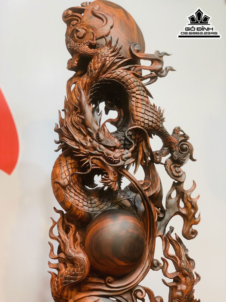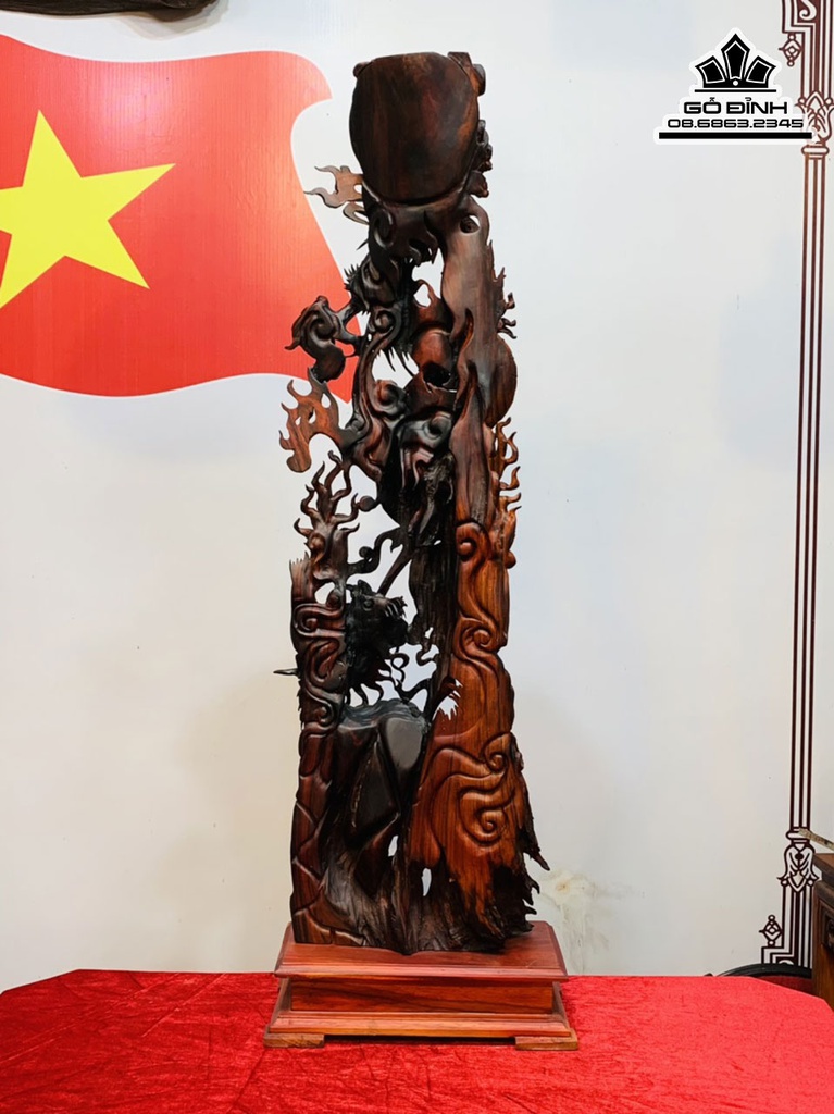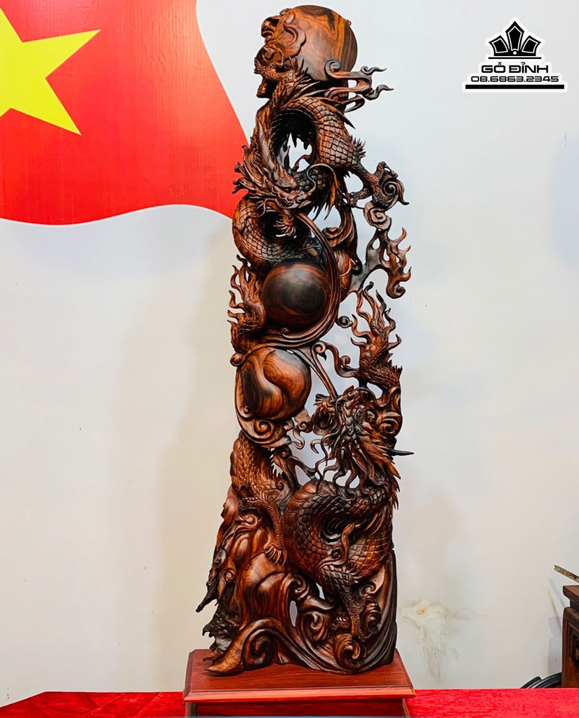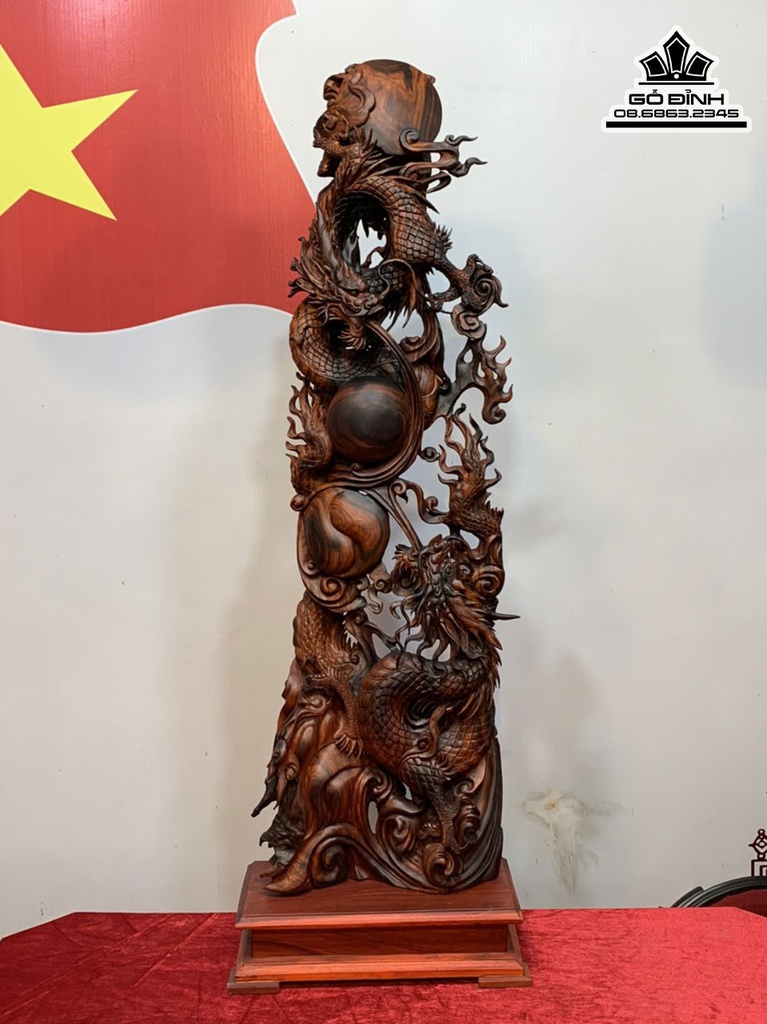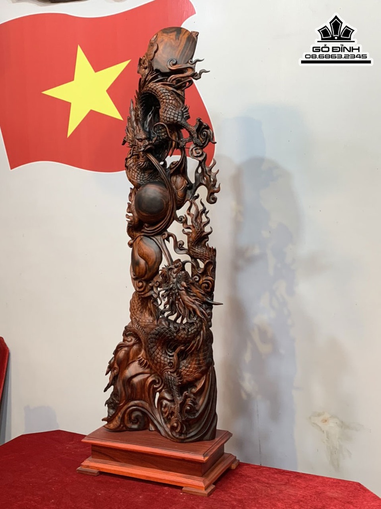 Tượng Song Long Vờn Ngọc Gỗ Trắc Cao 116 Ngang 32 Sâu 16 (cm)