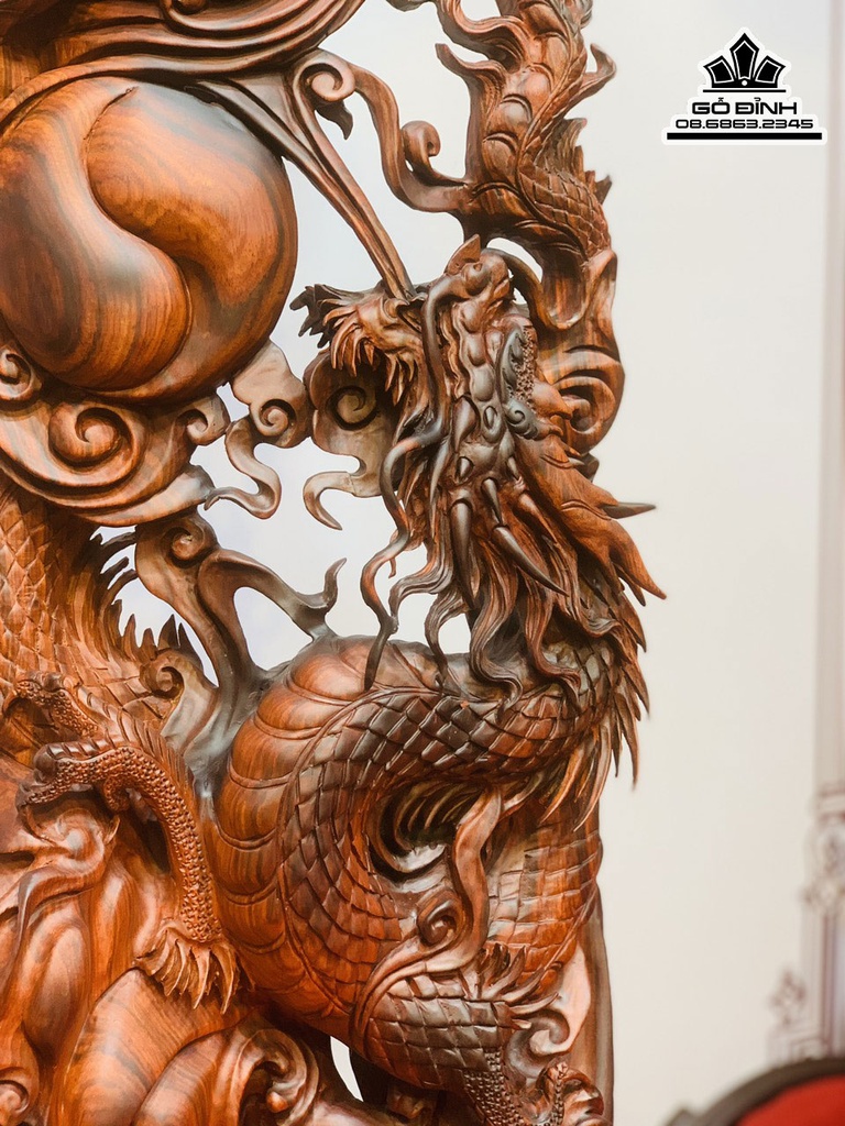 Tượng Song Long Vờn Ngọc Gỗ Trắc