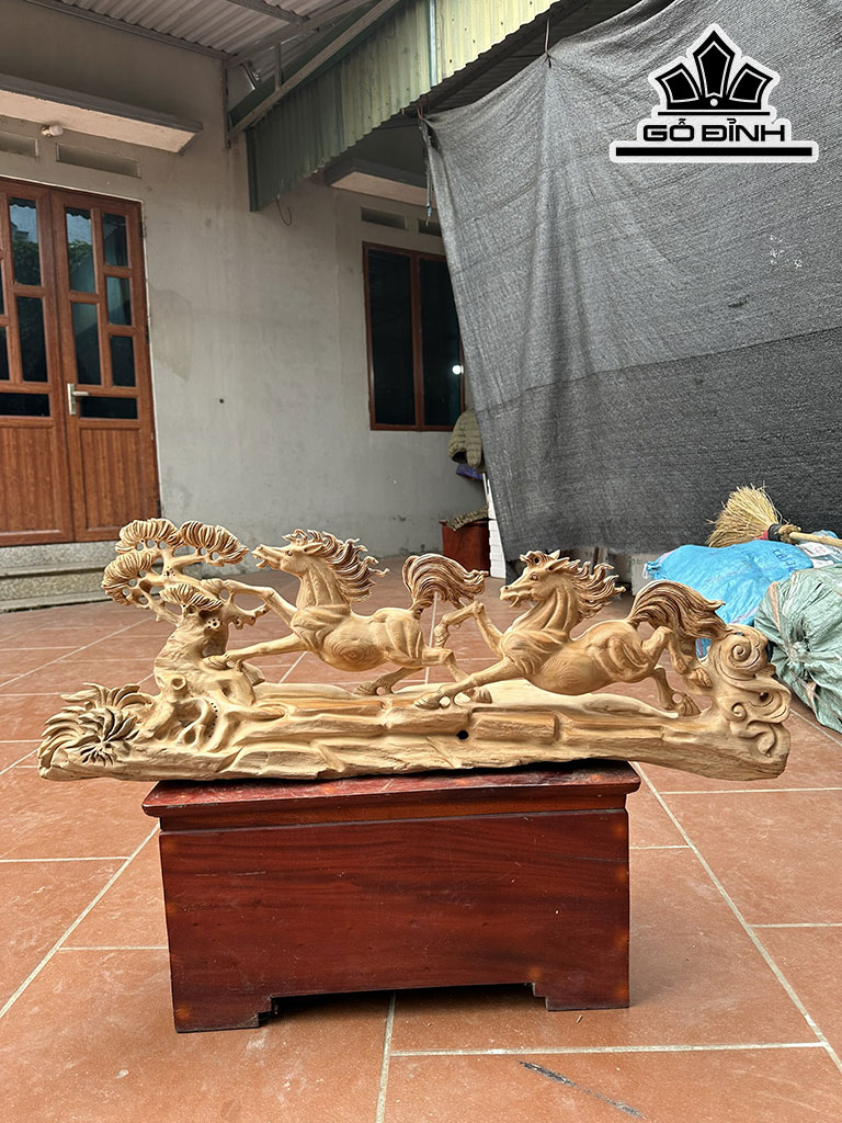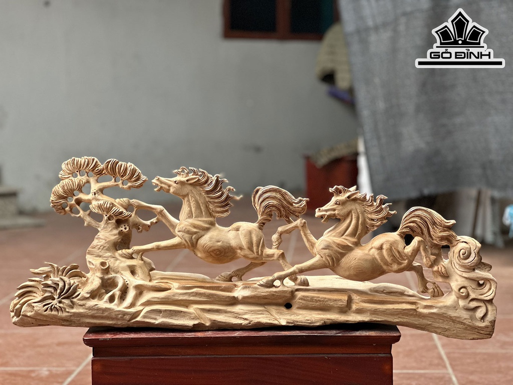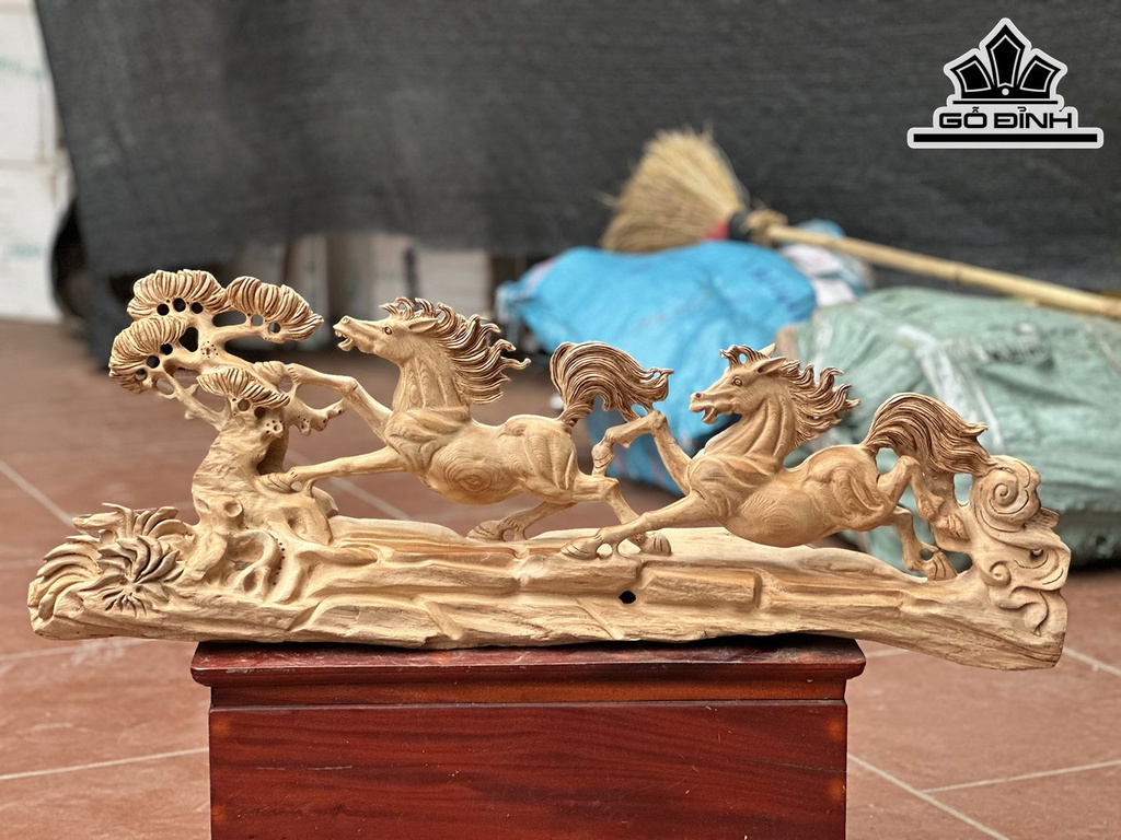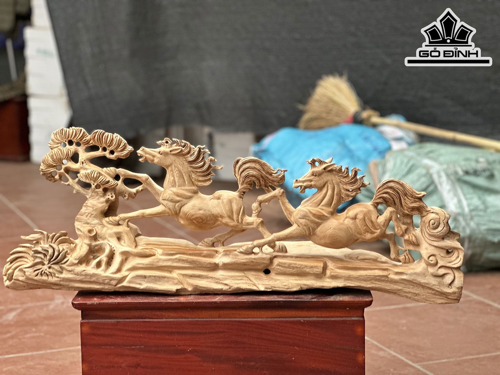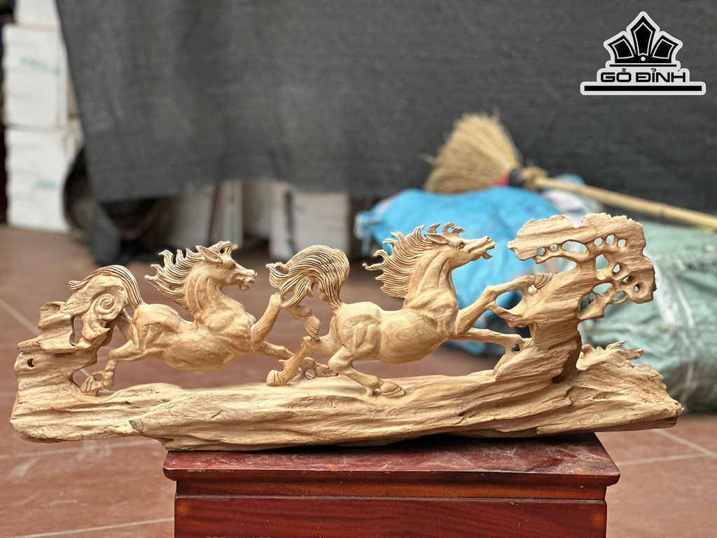 Tượng Song Mã Gỗ Ngọc Am Cao 35 Ngang 89 Sâu 17 (cm)