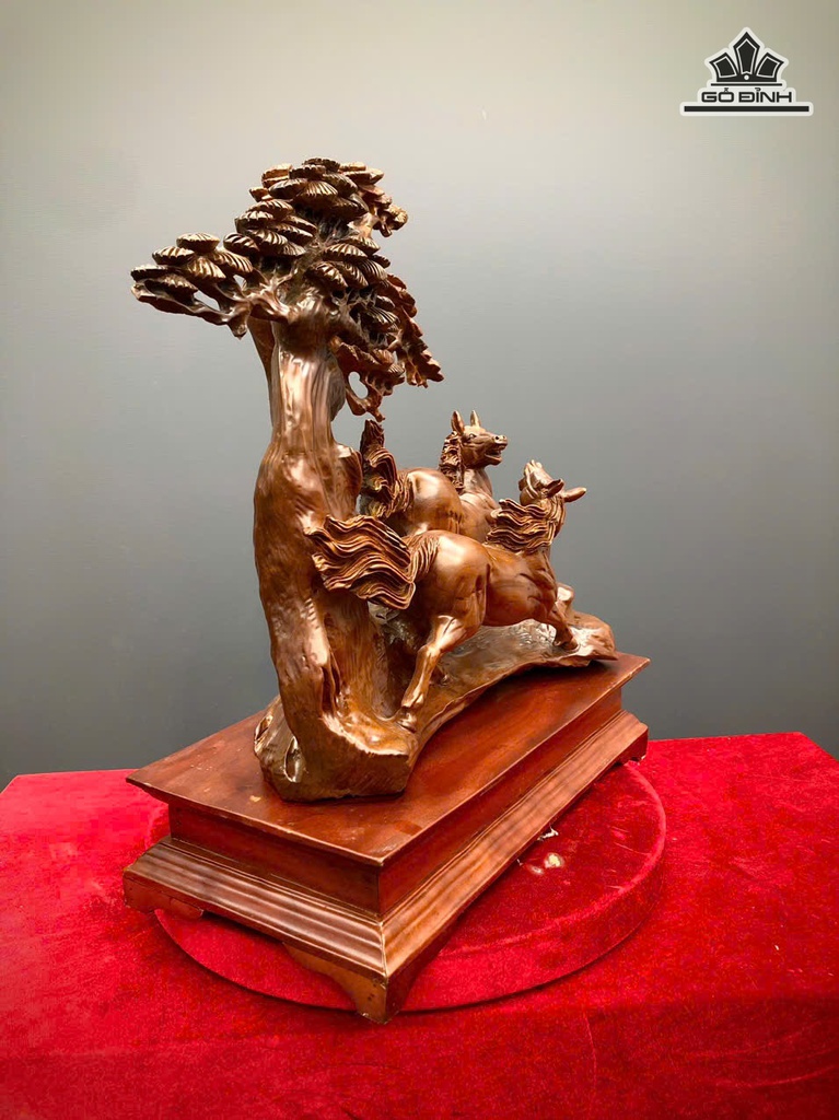 Tượng Song Mã Uyên Ương Gỗ Bách Xanh Cao 50 Ngang 41 Sâu 18 (cm)