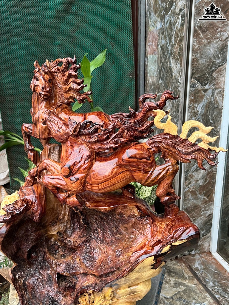 Tượng Song Mã Uyên Ương Gỗ Cẩm Cao 60 Ngang 50 Sâu 32 (cm)