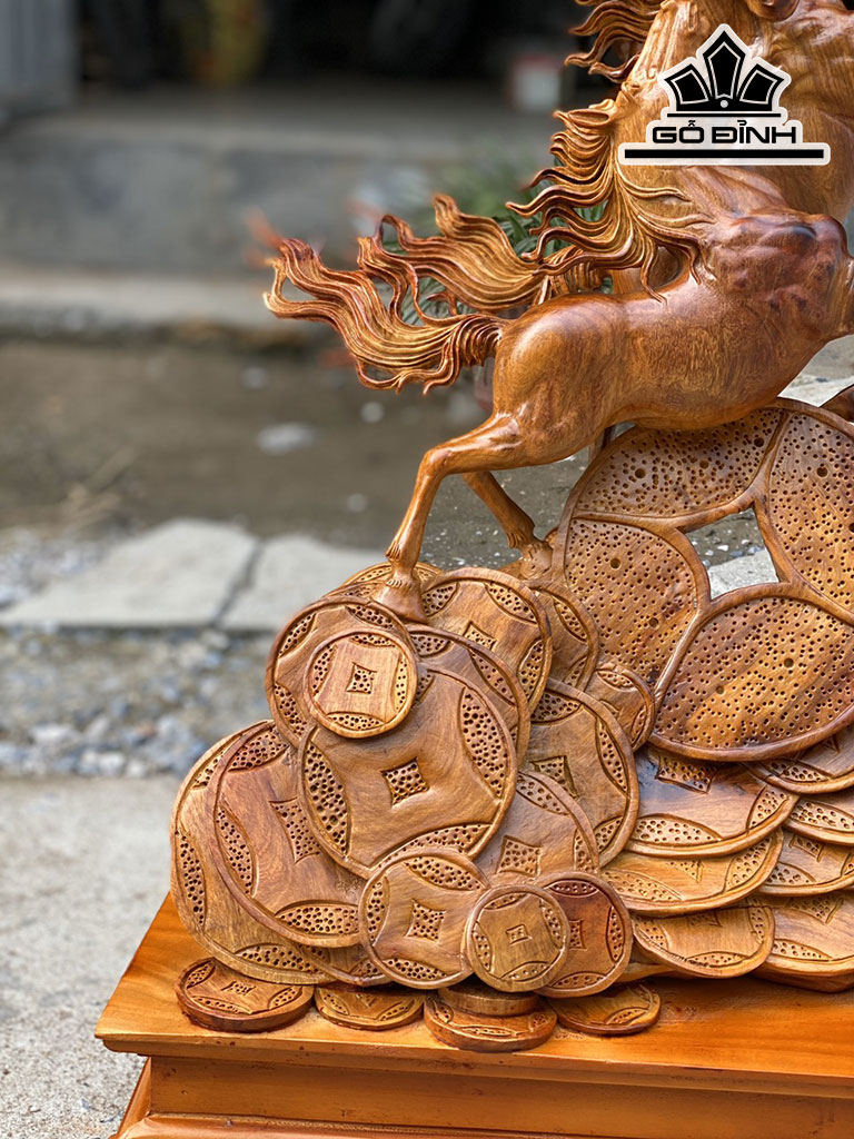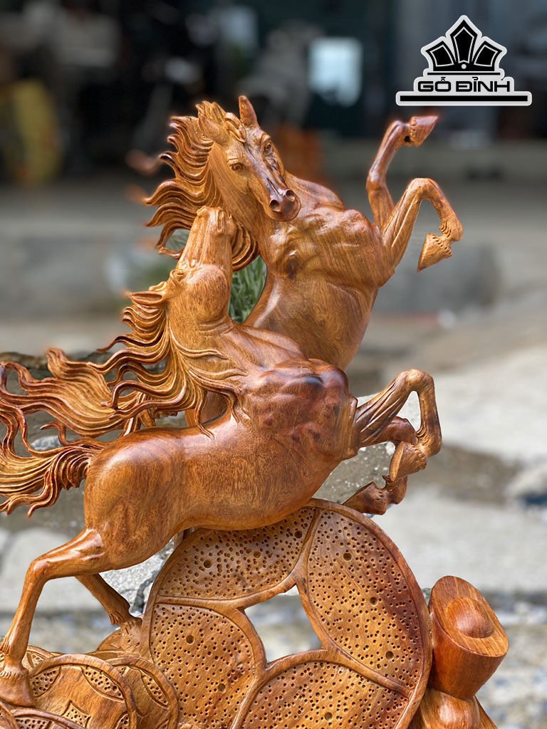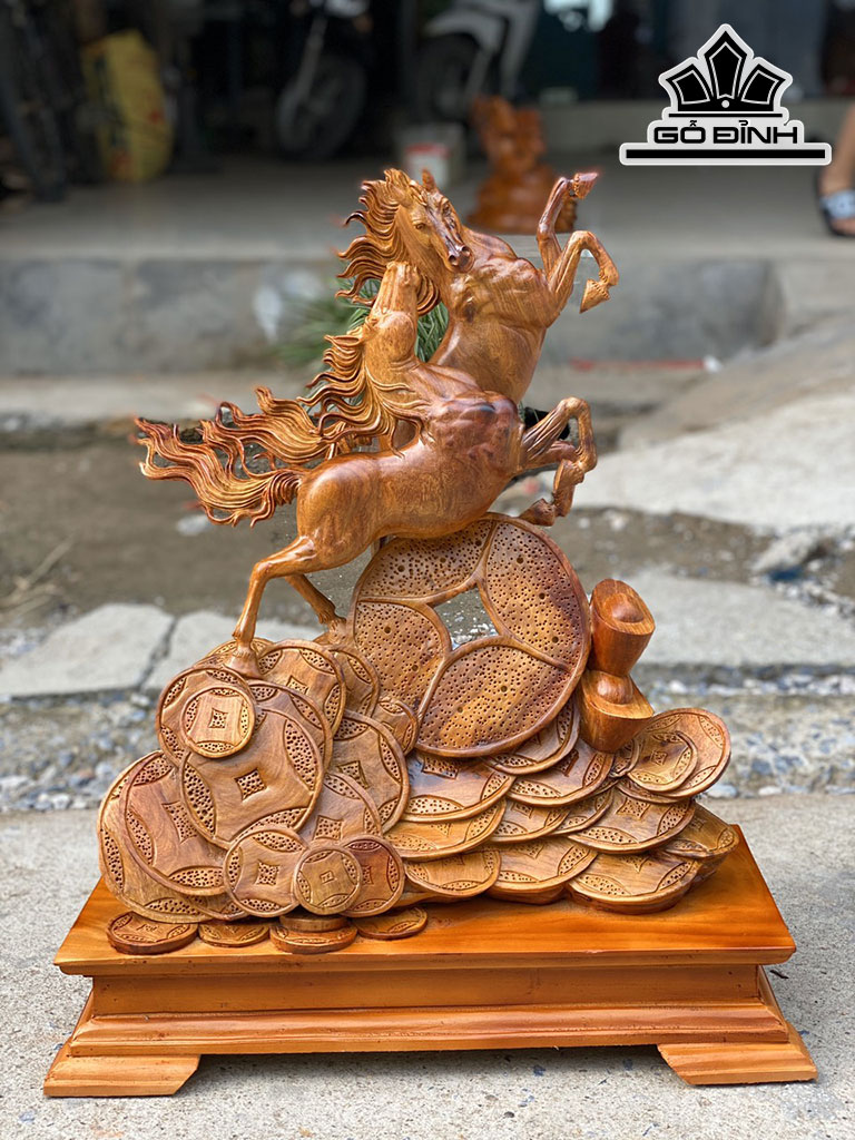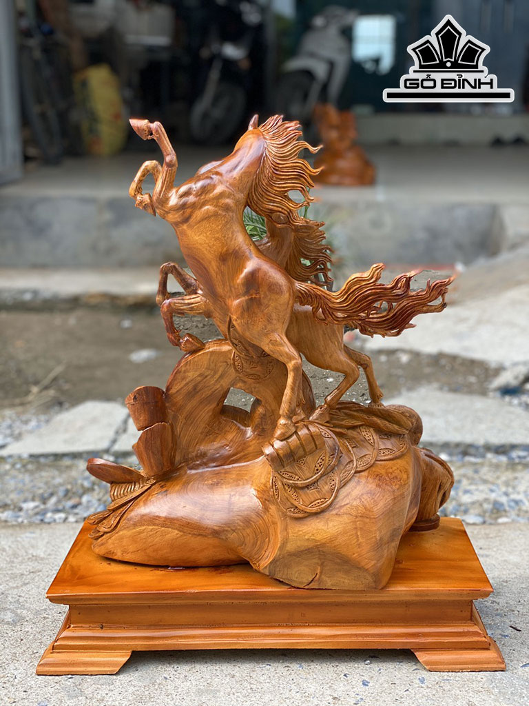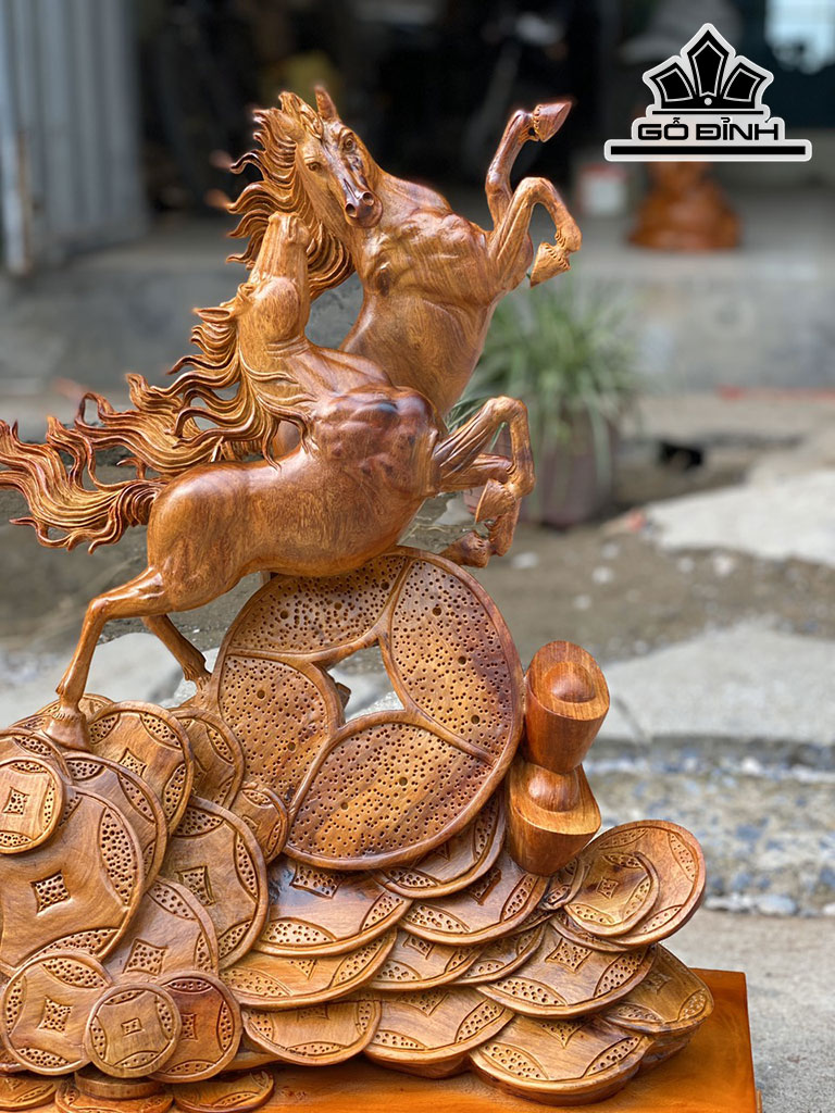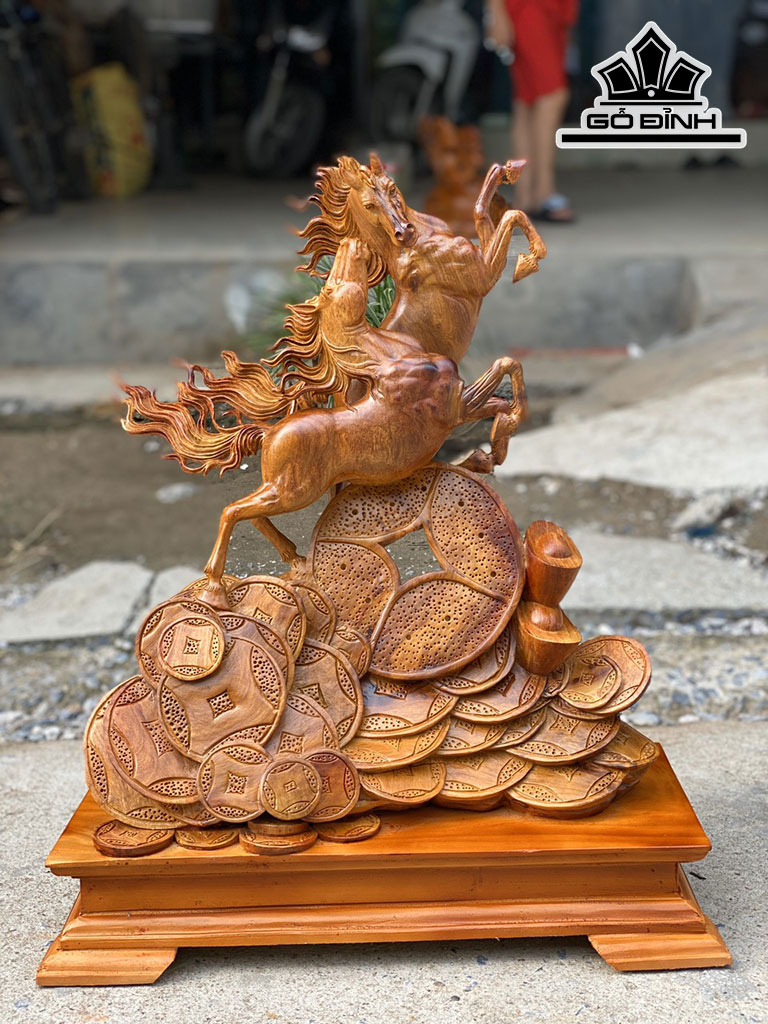 Tượng Song Mã Uyên Ương Gỗ Hương Cao 52 Ngang 50 Sâu 24 (cm)