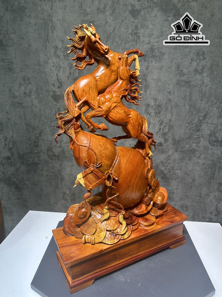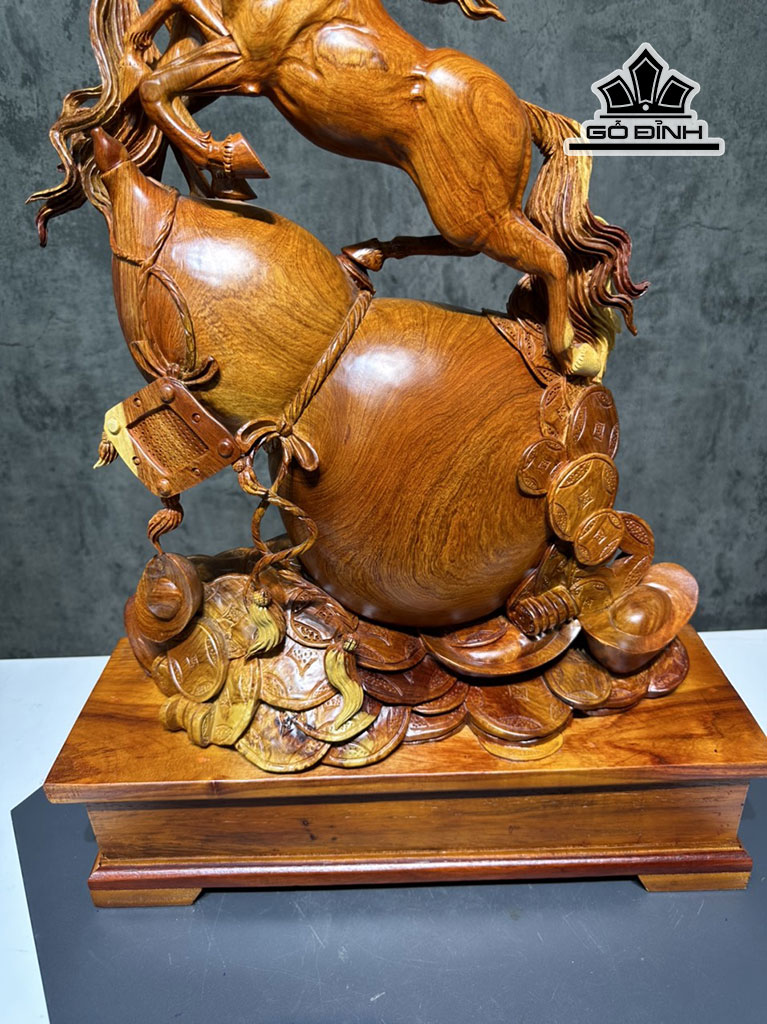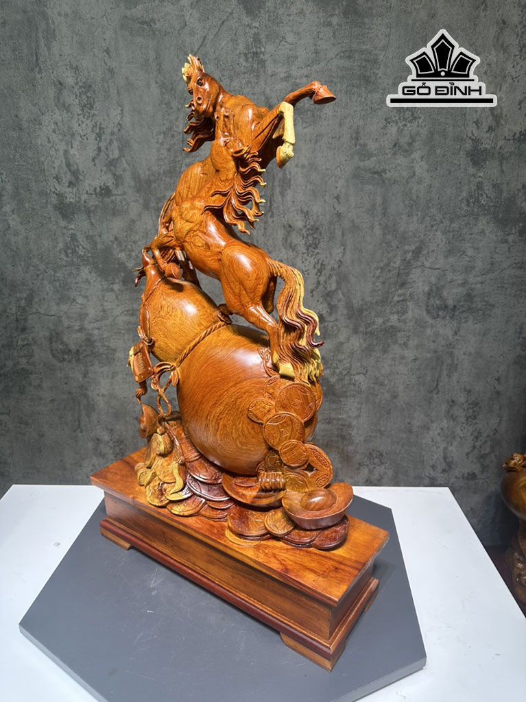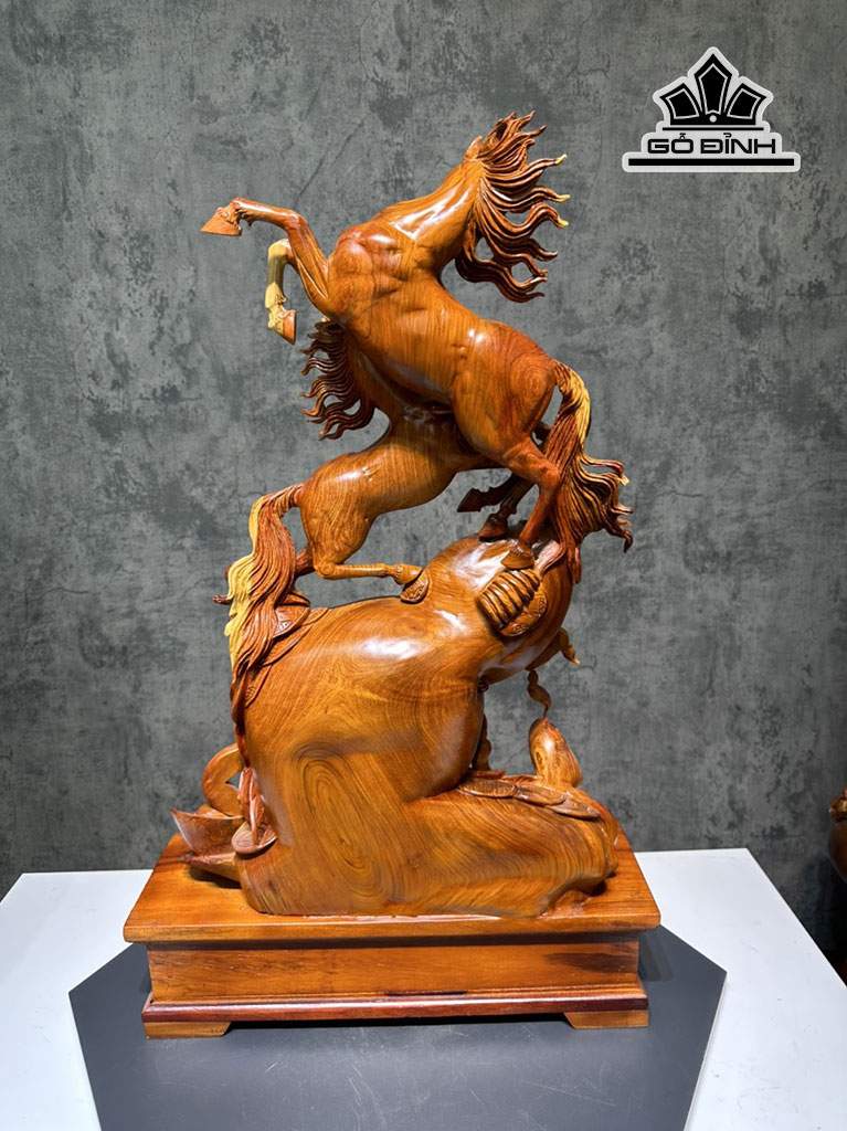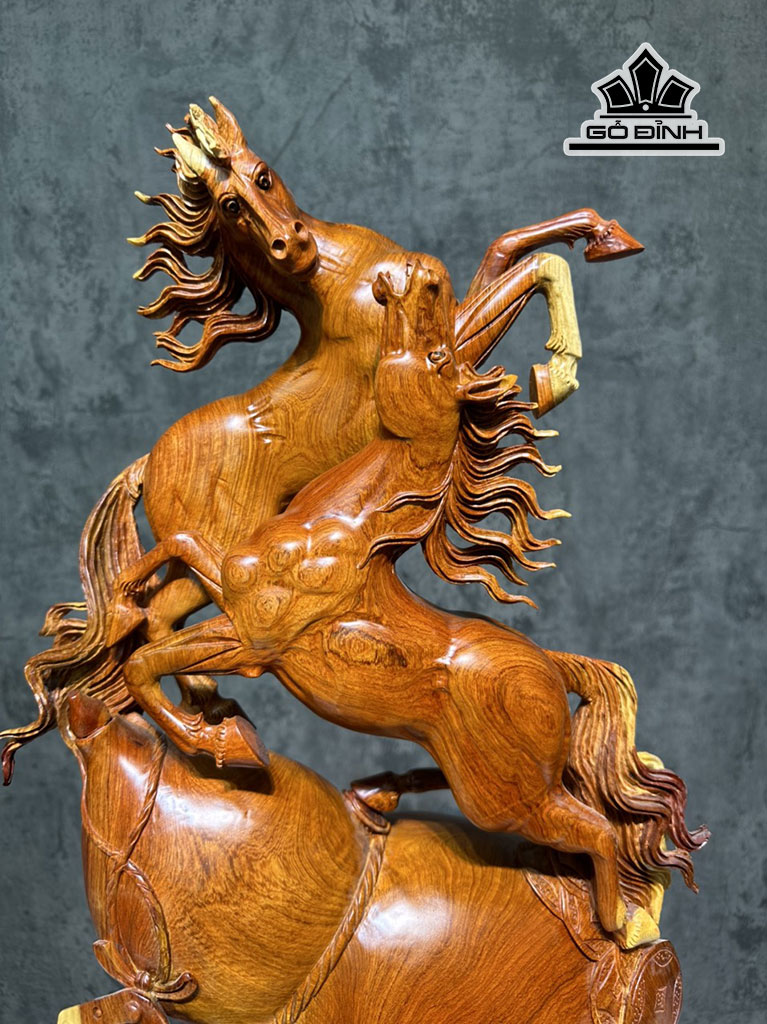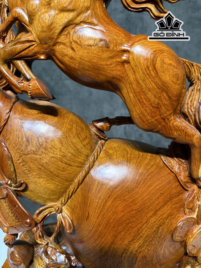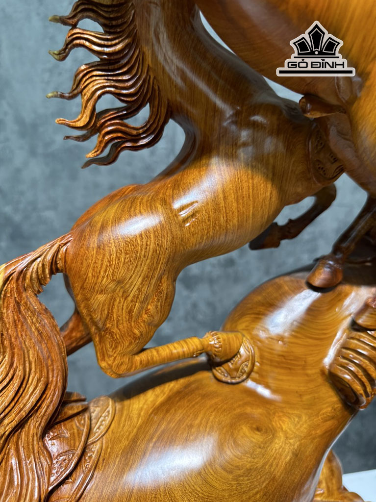 Tượng Song Mã Uyên Ương Gỗ Hương Cao 82 Ngang 45 Sâu 17 (cm)