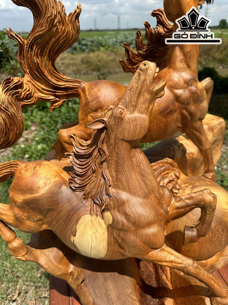 Tượng Song Mã Uyên Ương Gỗ Hương Cao 85 Ngang 70 Sâu 52 (cm)