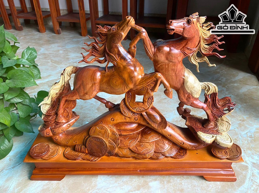 Tượng Song Mã Uyên Ương Gỗ Hương Cao Cả Kỷ 41 Ngang 52 Sâu 12 (cm)