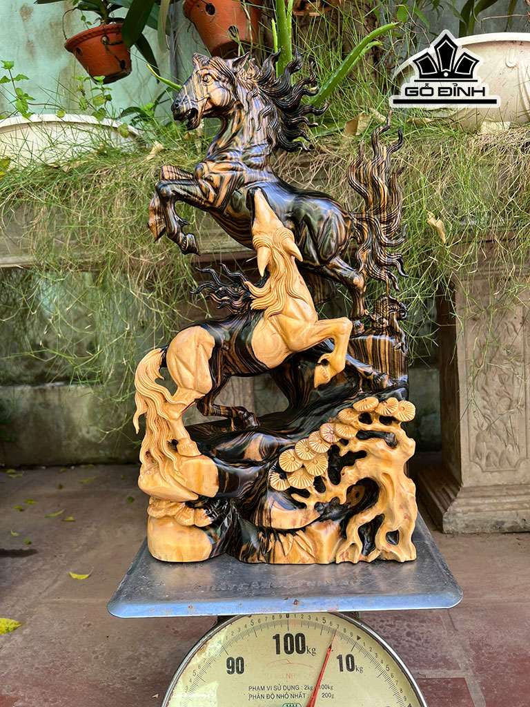 Tượng Song Mã Uyên Ương Gỗ Mun Hoa Cao 50 Ngang 28 Sâu 12 (cm)