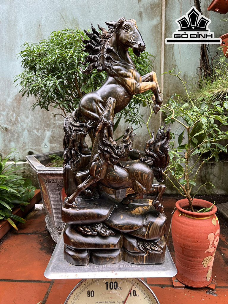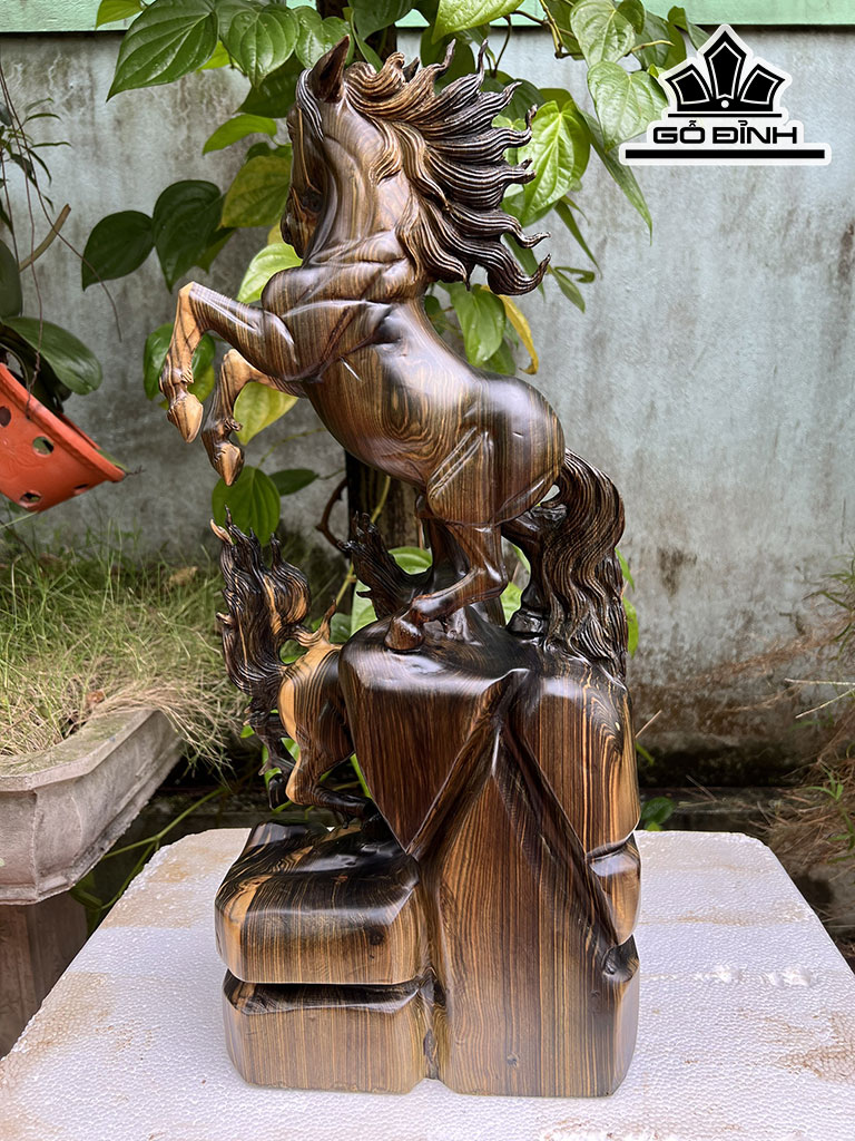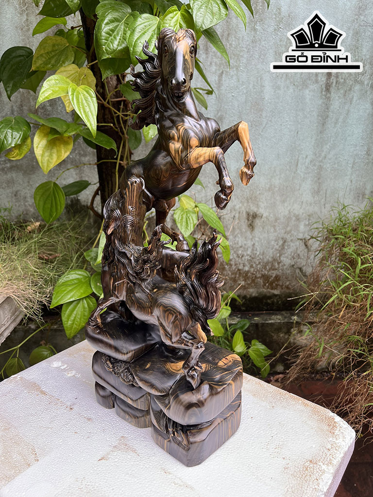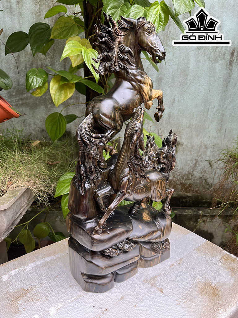 Tượng Song Mã Uyên Ương Gỗ Mun Hoa Cao 60 Ngang 27 Sâu 15 (cm)