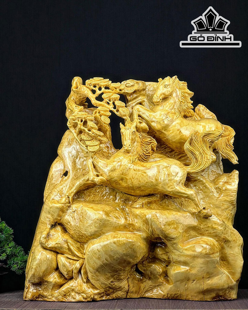 Tượng Song Mã Uyên Ương Gỗ Nu Kháo Cao 52 Ngang 48 Sâu 16 (cm)