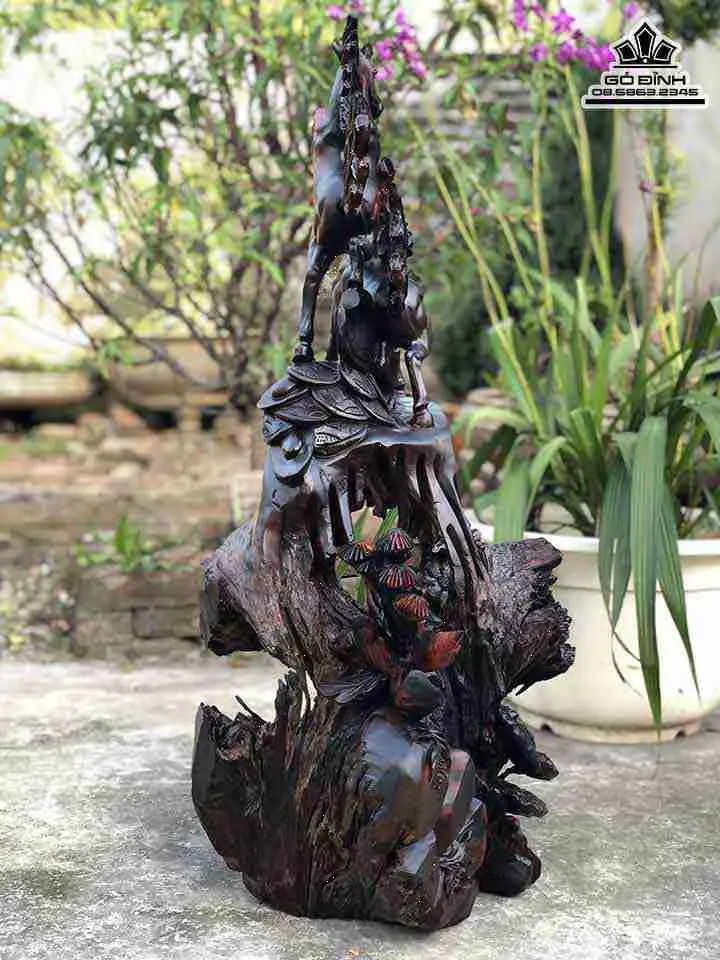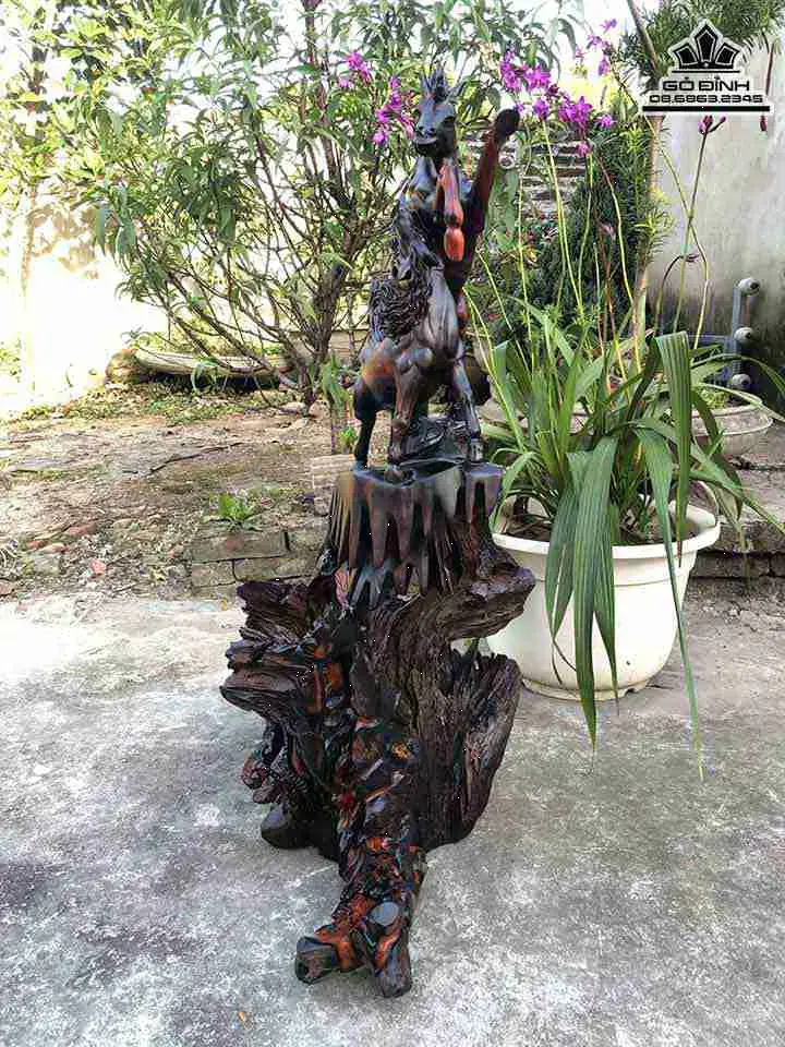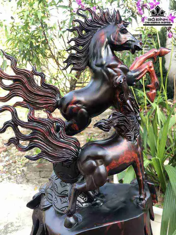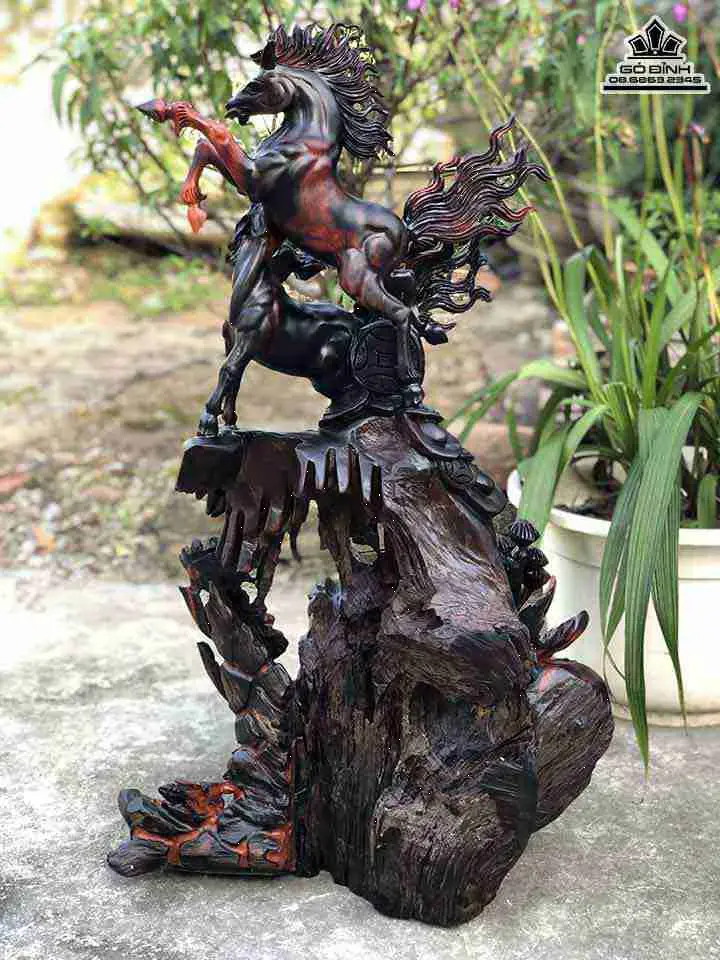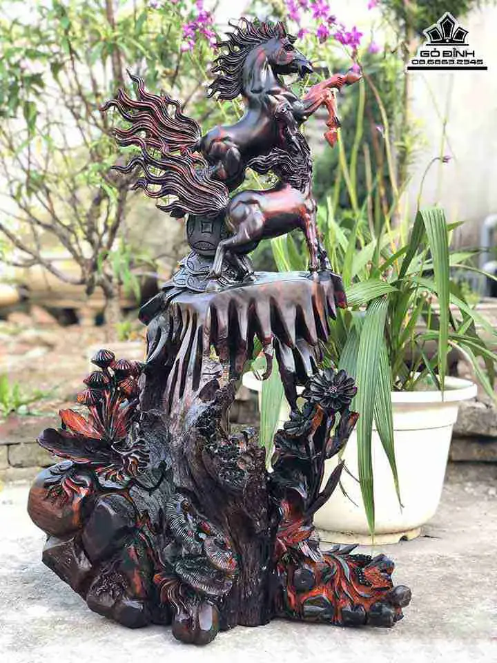 Tượng Song Mã Uyên Ương Gỗ Trắc Cao 86 Ngang 48 Sâu 36 (cm)