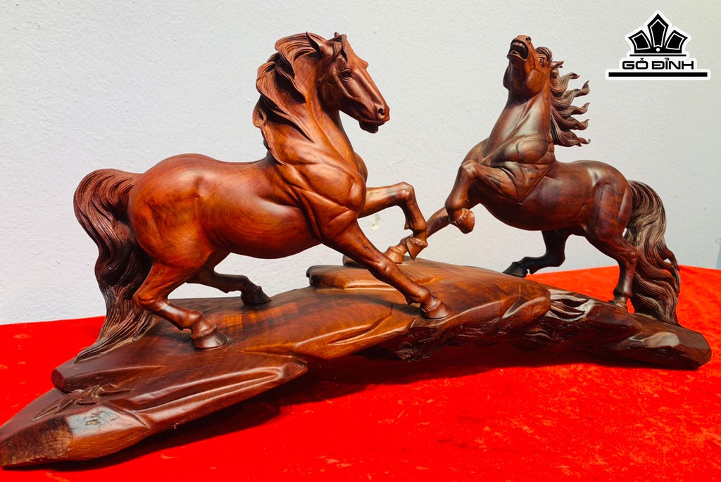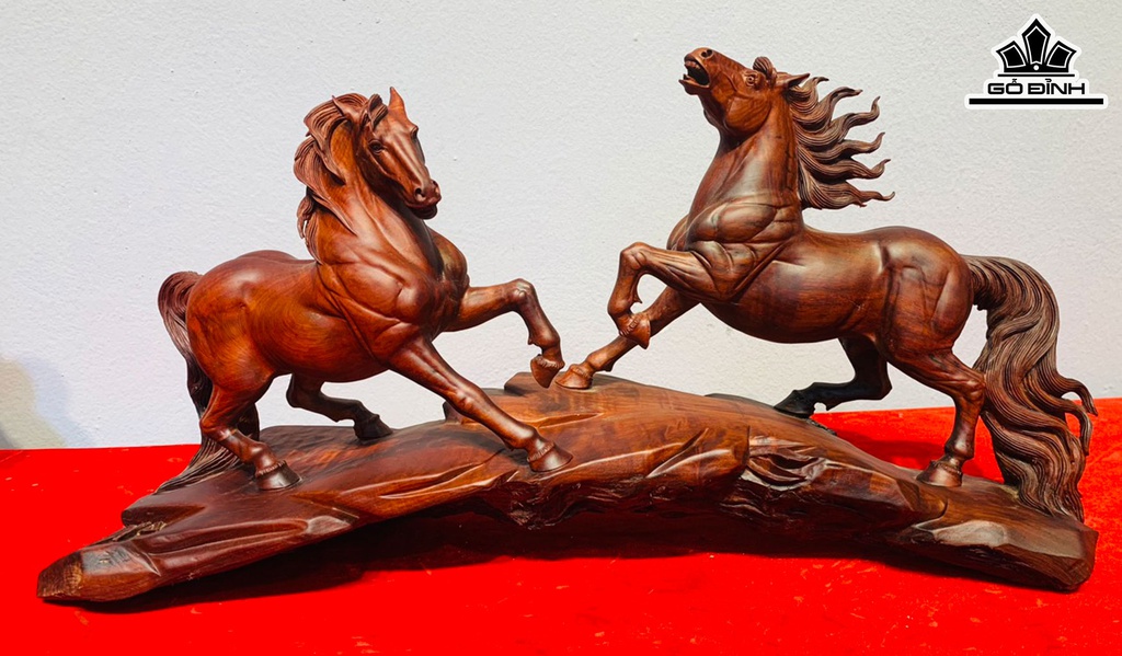 Tượng Song Mã Uyên Ương Gỗ Trắc