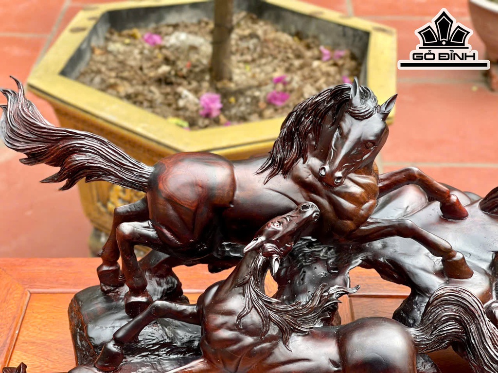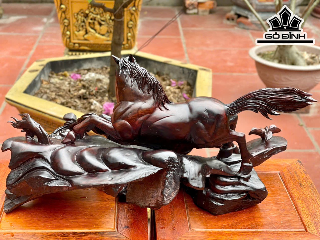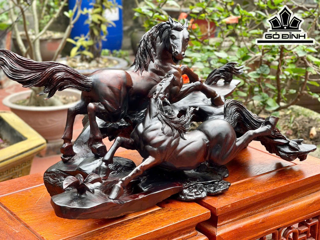 Tượng Song Mã Uyên Ương Gỗ Trắc Cao 27 Ngang 51 Sâu 28 (cm)