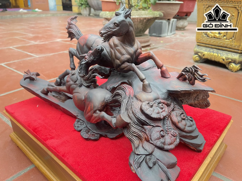 Tượng Song Mã Uyên Ương Gỗ Trắc Cao 28 Ngang 50 Sâu 28 (cm)