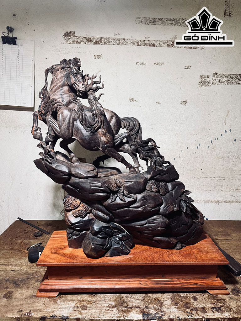 Tượng Song Mã Uyên Ương Gỗ Trắc Cao 56 Ngang 45 Sâu 16 (cm)