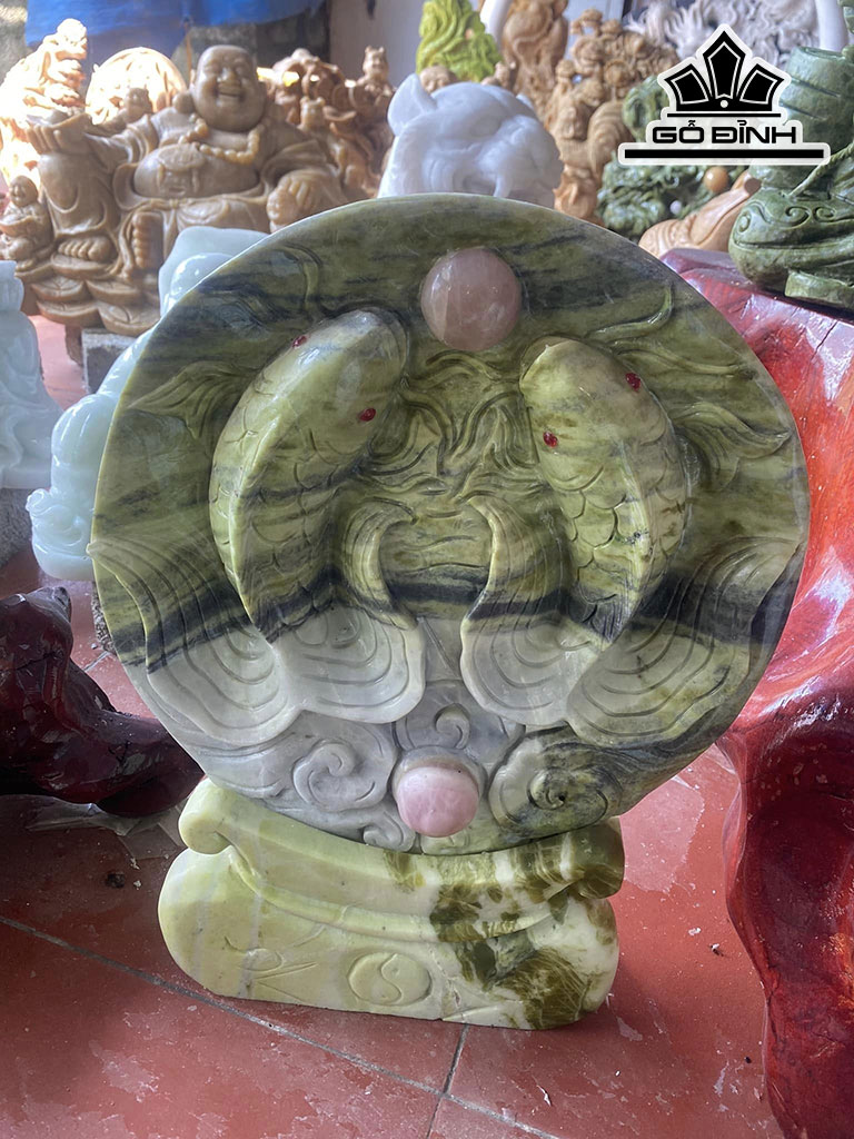 Tượng Song Ngư Đá Serpentine Cao 36 Ngang 35 (cm)