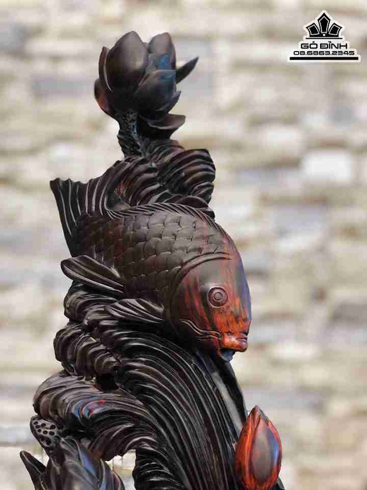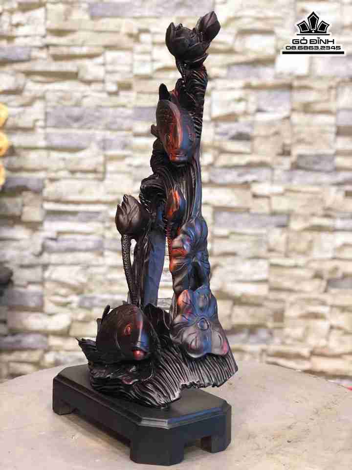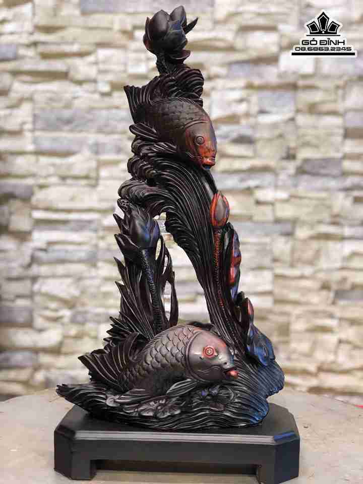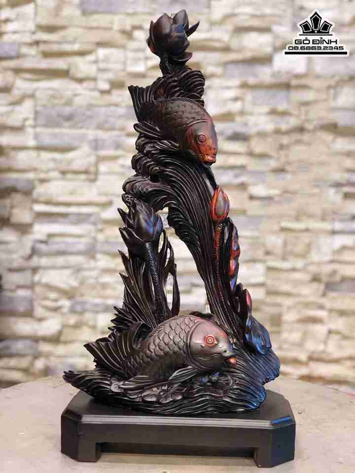 Tượng Song Ngư Đoạt Ngọc gỗ trắc cao 56 rộng 28 dày 13 (cm)