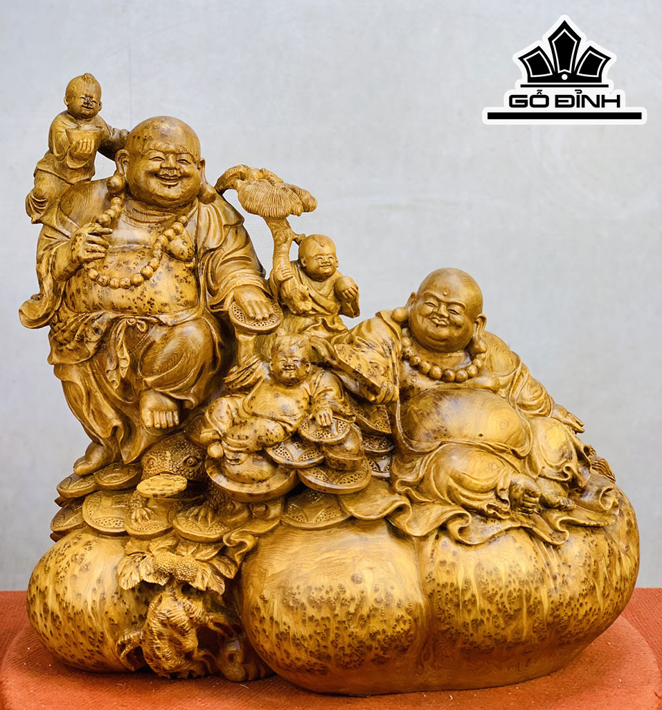 Tượng Song Phúc Lâm Môn Gỗ Nu Ngọc Am Cao 55 Ngang 60 Sâu 26 (cm)