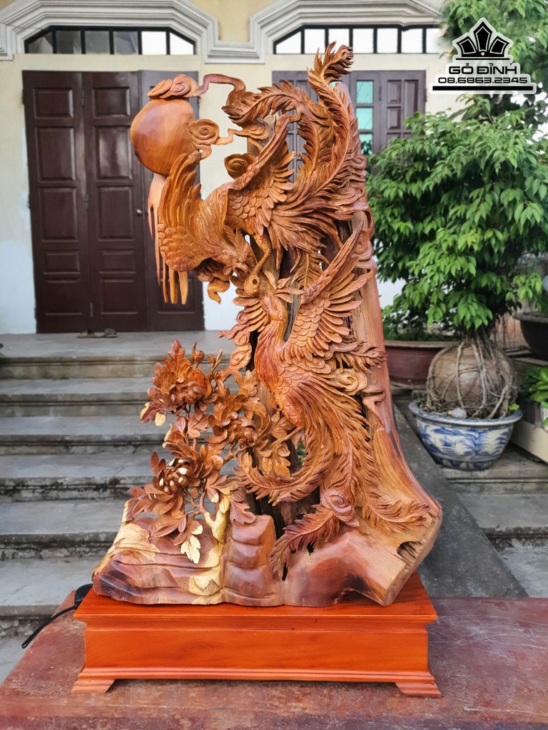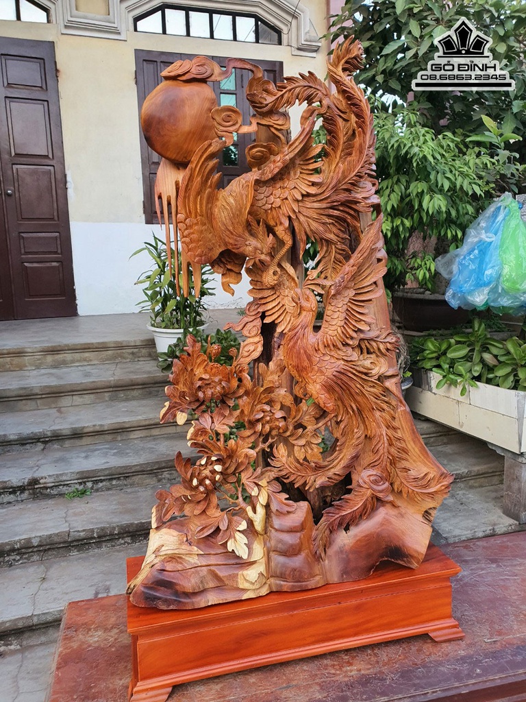 Tượng Song Phương Uyên Ương Gỗ Hươn Cao 105 Ngang 68 Sâu 28 (cm)