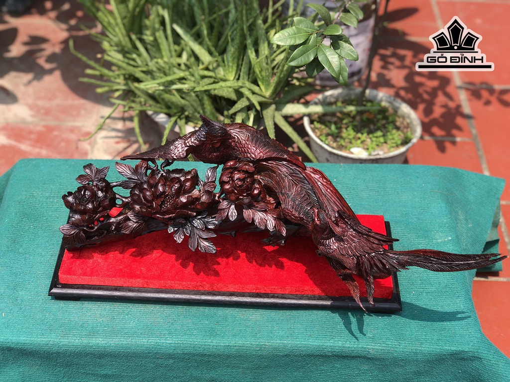 Tượng Song Trĩ Gỗ Trắc Cao 34 Ngang 65 Sâu 32 (cm)