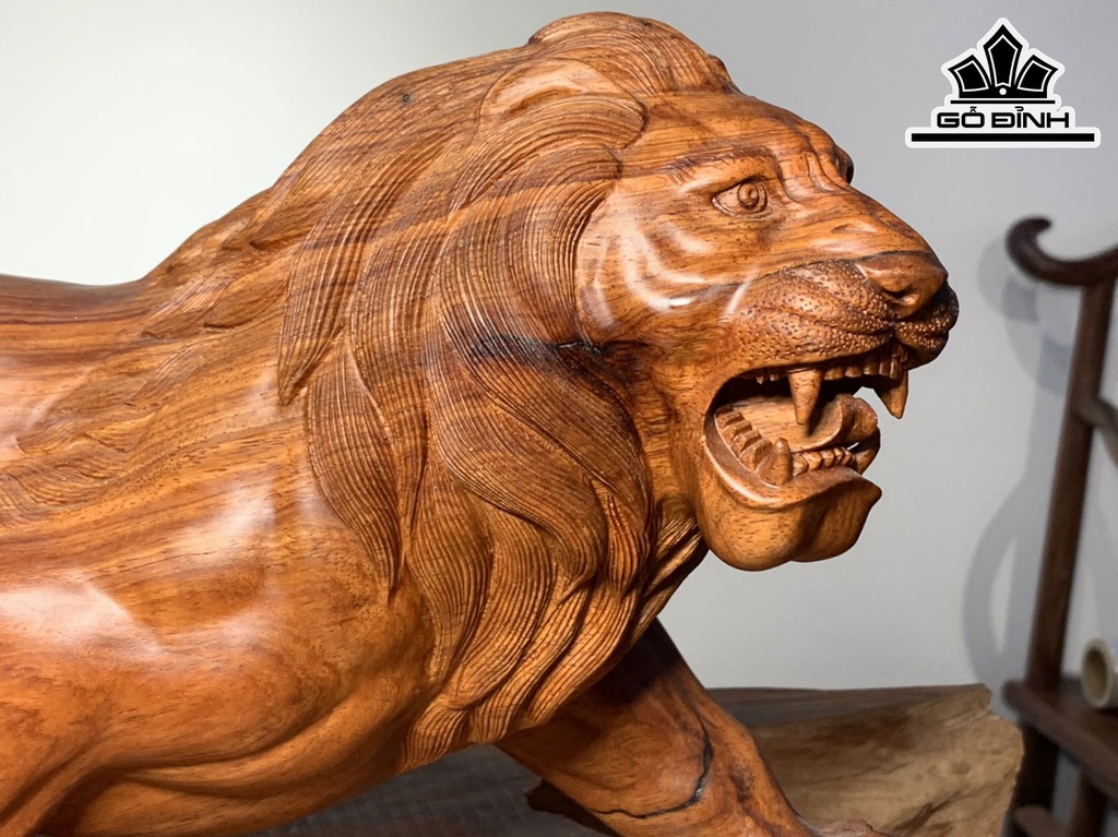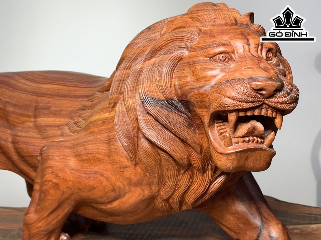 Tượng Sư Tử Gỗ Hương Cao 20 Ngang 48 Sâu 13 (cm)