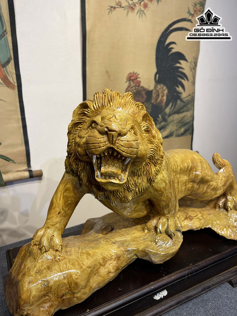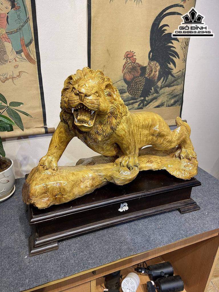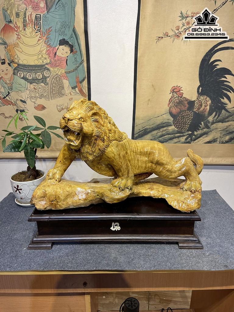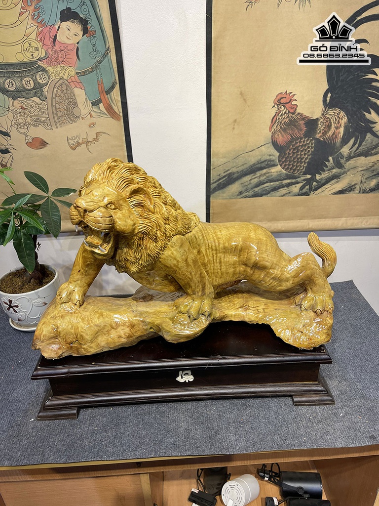 Tượng Sư Tử Gỗ Nu Kháo Cao 35 Dài 61 Sâu 22 Cao Kỷ 13 (cm)