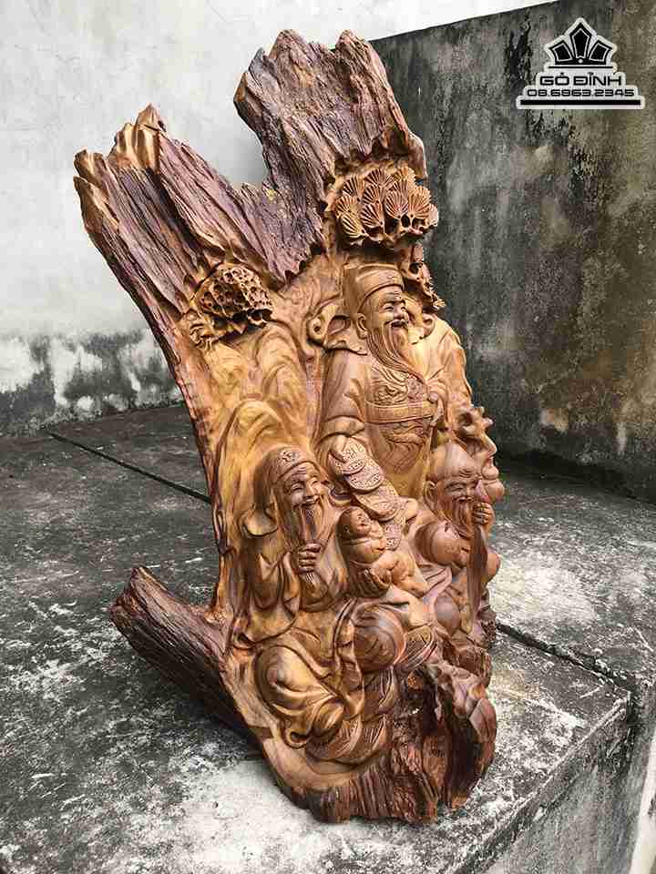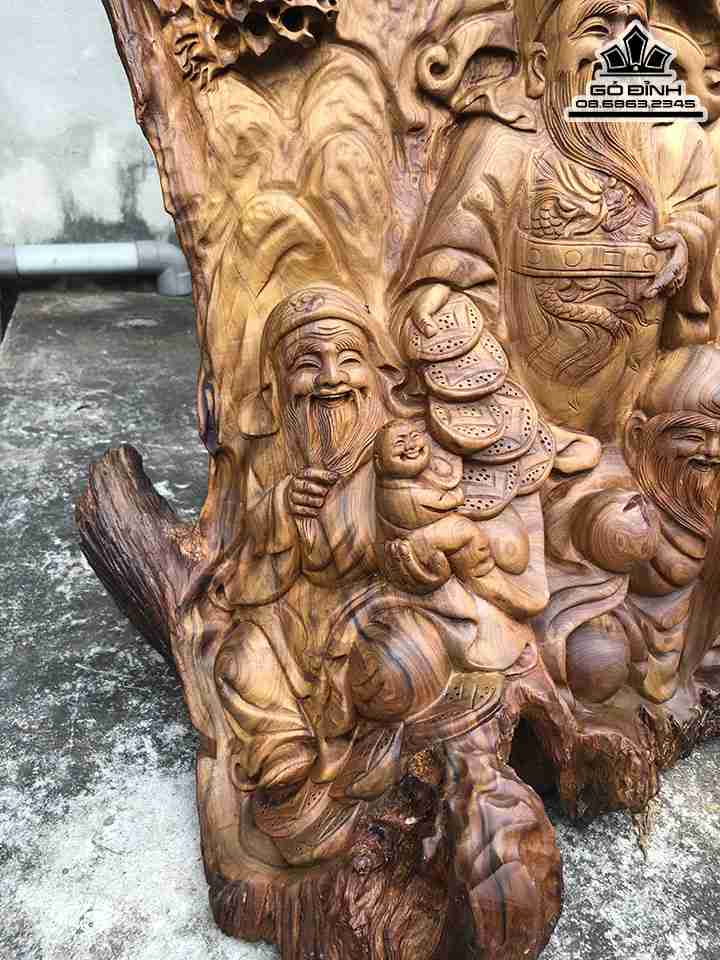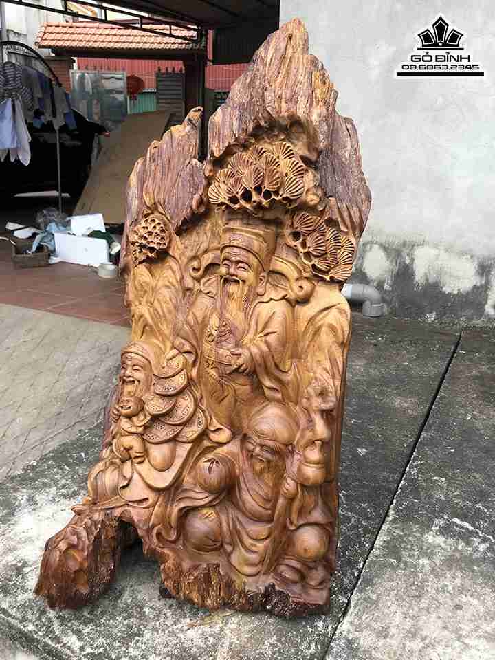 Tượng Tam Đa Phúc Lộc Thọ Gỗ Bách Xanh Cao 68 Ngang 41 Sâu 25 (cm)