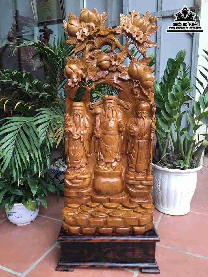 Tượng Tam Đa Phúc Lộc Thọ Gỗ Xá Xị ( Gù Hương ) Cao 106 Rộng 41 Sâu 19 (cm)