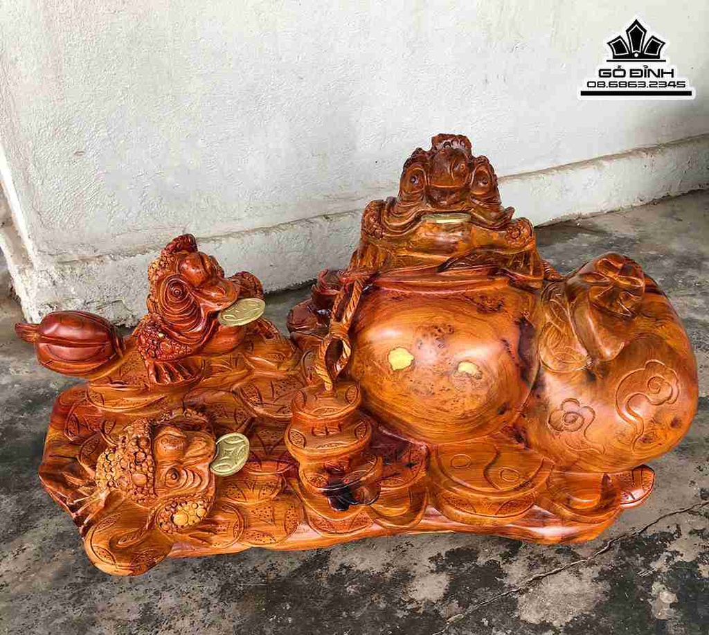 Tượng Tam Cóc Chấn Lộc Gỗ Hương Cao 37 Ngang 60 Sâu 37 (cm)