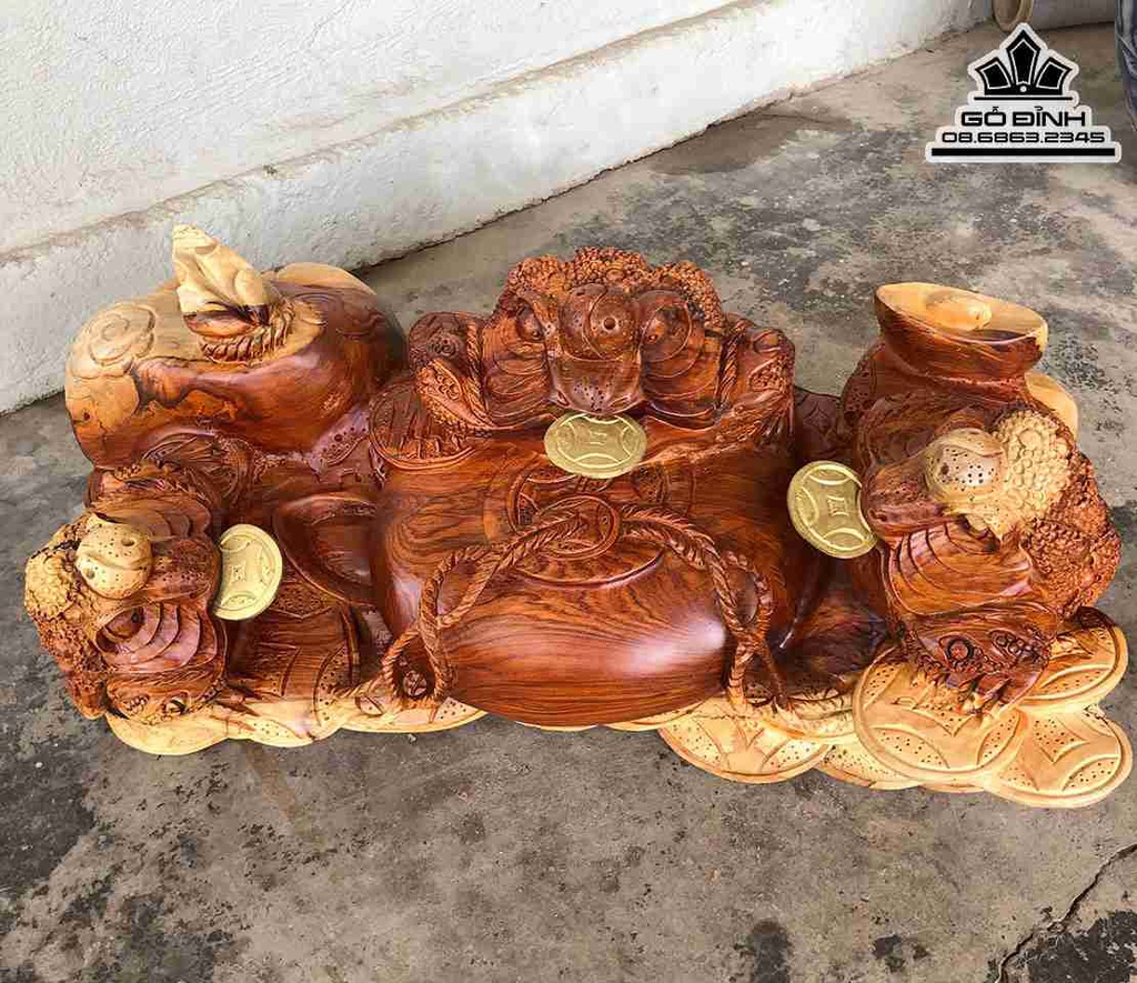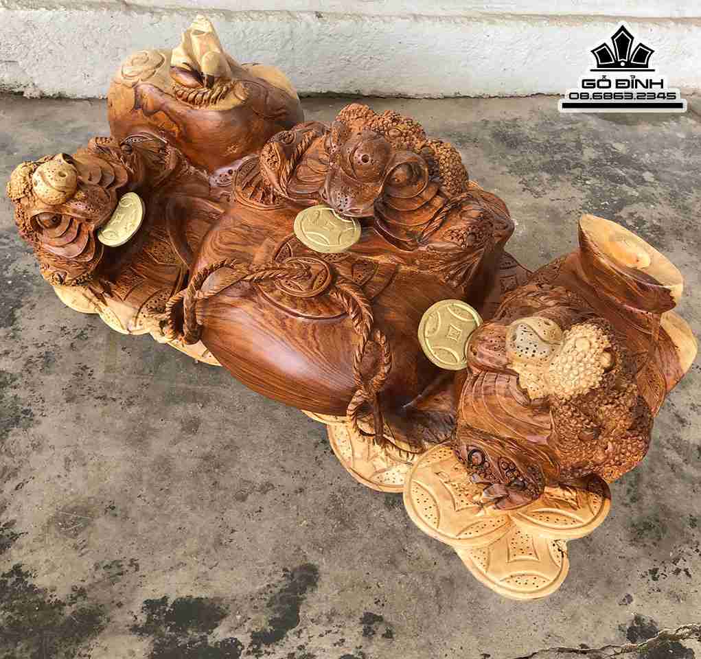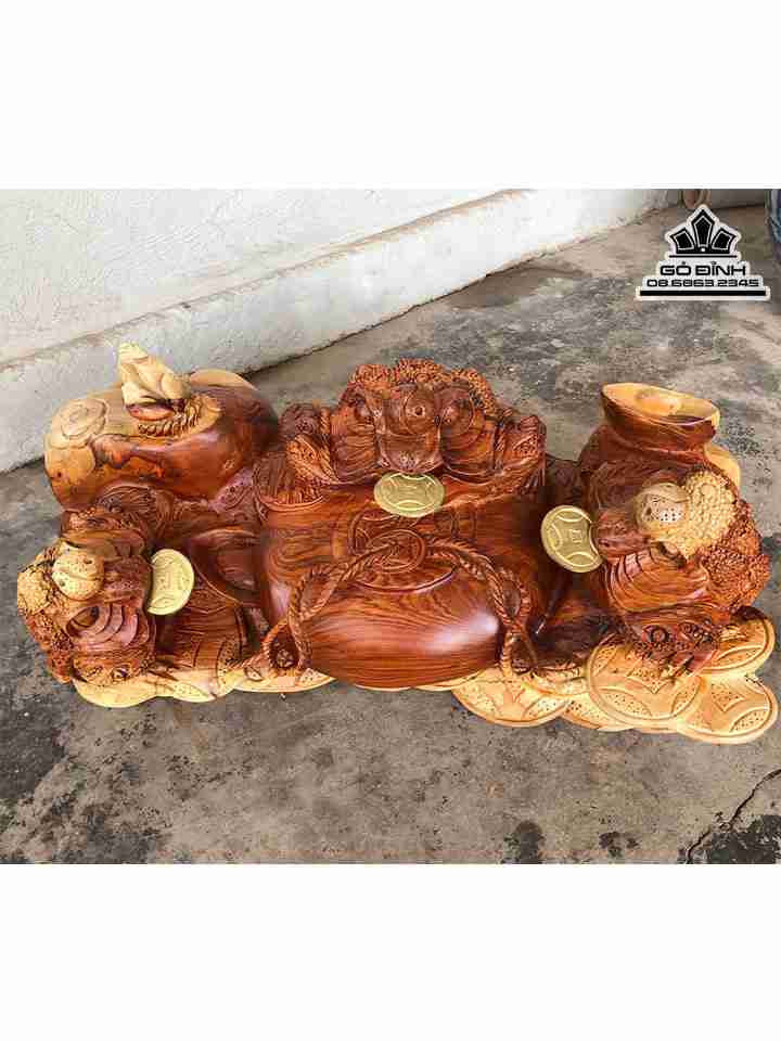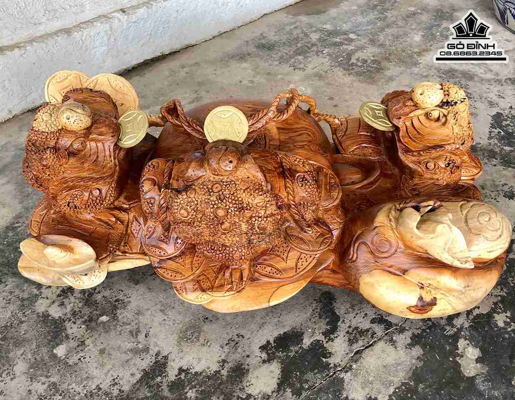 Tượng Tam Cóc Chấn Lộc Gỗ Hương Cao 22 Ngang 50 Sâu 29 (cm)
