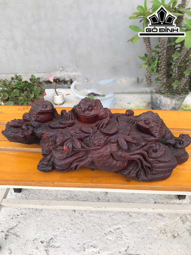 Tượng Tam Cóc Gỗ Trắc Cao 14 Ngang 48 Sâu 20 (cm)